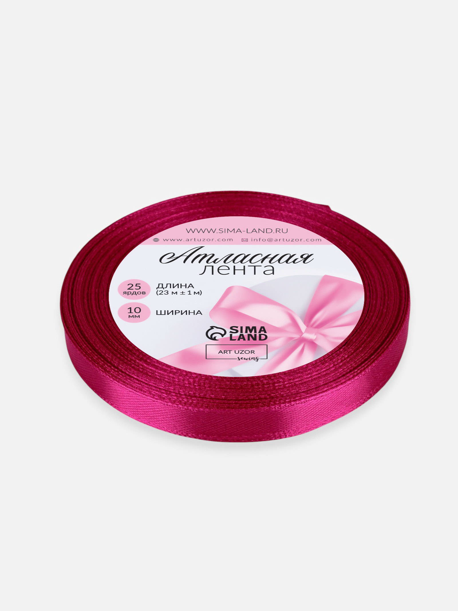 Лента атласная, 10 мм, 23+-1 м, ярко-розовая №95, 9x9x1 см., Арт Узор, Китай