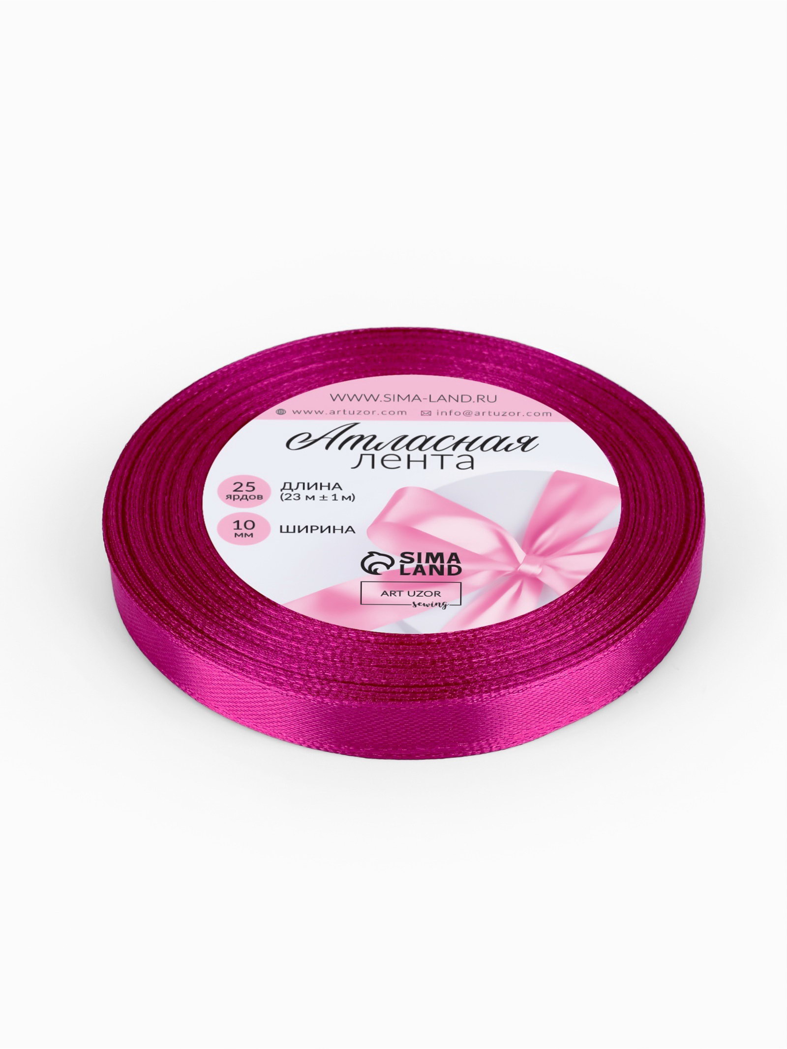 Лента атласная, 10 мм, 23+-1 м, пурпурно-фиолетовая №29, 9x9x1 см., Арт Узор, Китай
