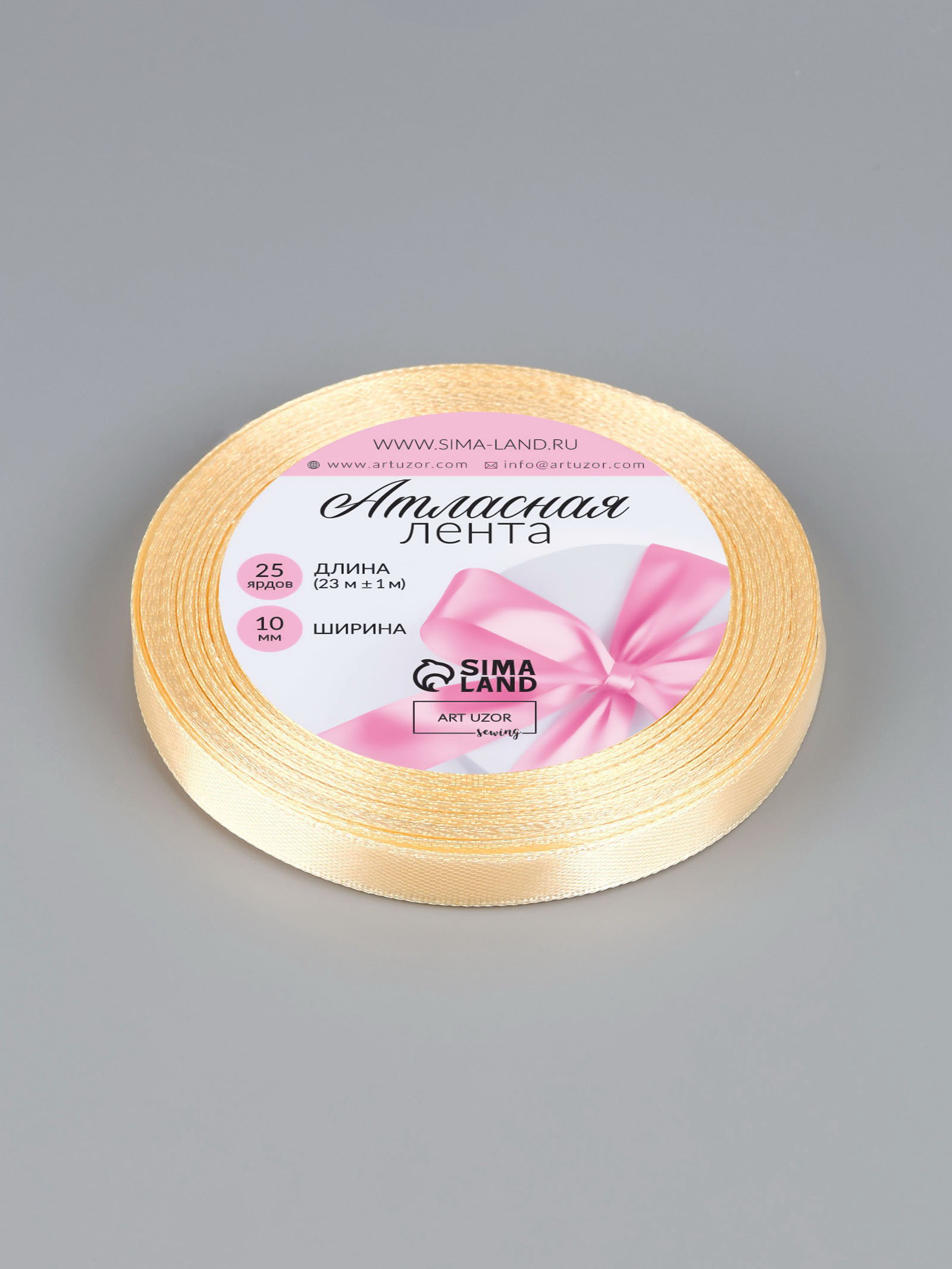 Лента атласная, 10 мм, 23+-1 м, светло-жёлтая, 9x9x1 см., Арт Узор, Китай