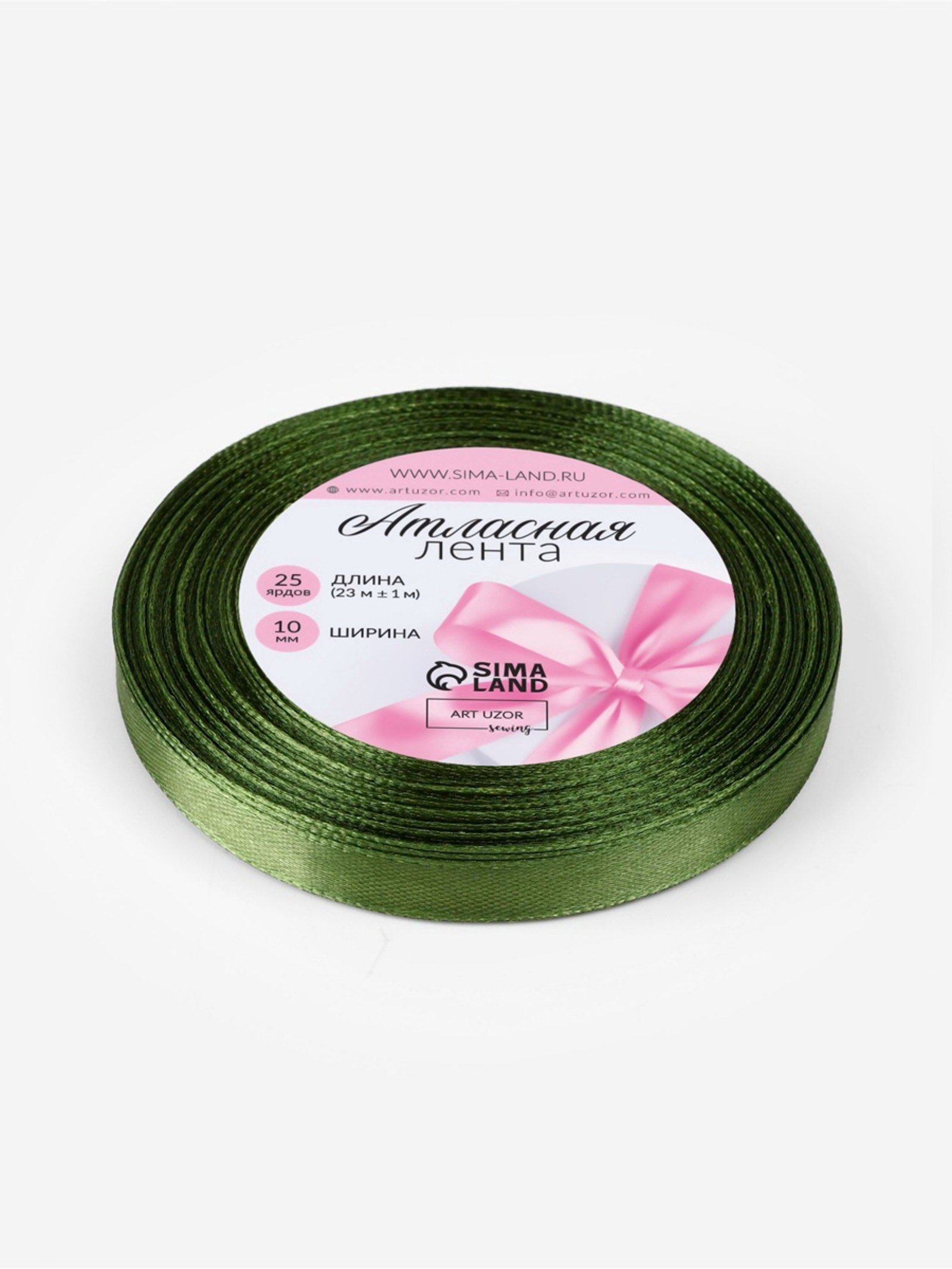 Лента атласная, 10 мм, 23+-1 м, насыщенно-зелёная №113, 9x9x1 см., Арт Узор, Китай
