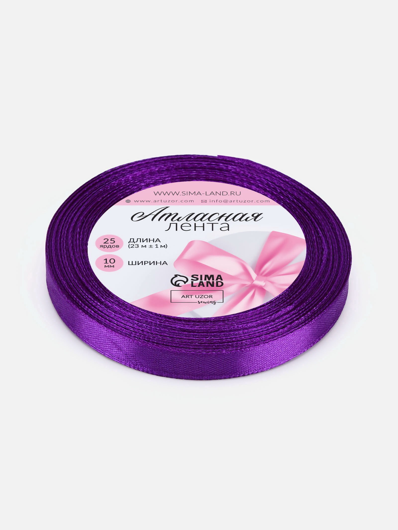 Лента атласная, 10 мм, 23+-1 м, фиолетовая №34, 9x9x1 см., Арт Узор, Китай