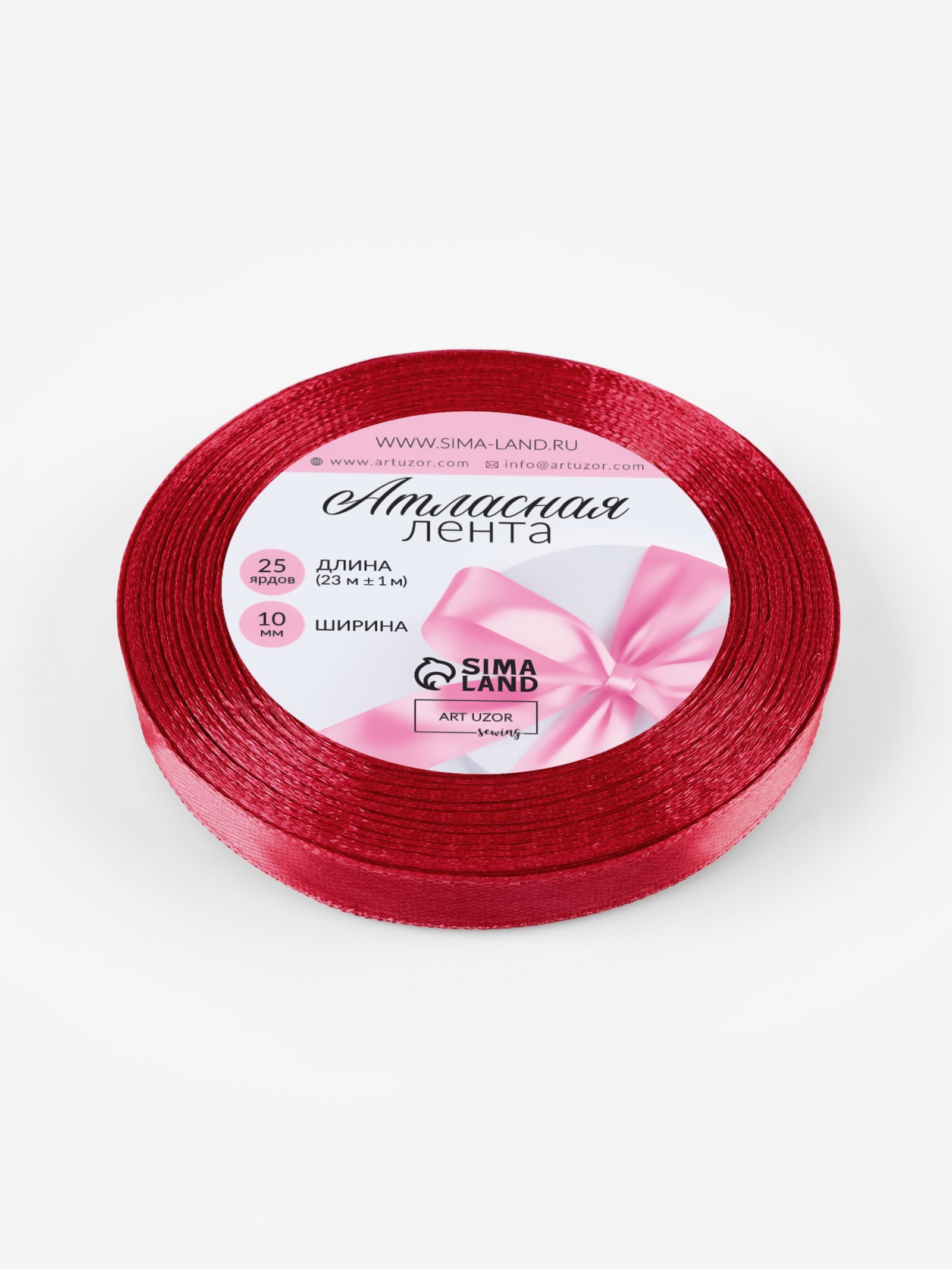Лента атласная, 10 мм x 23 +- 1 м, цвет глубокий красный №33, 9x9x1 см., Арт Узор, Китай