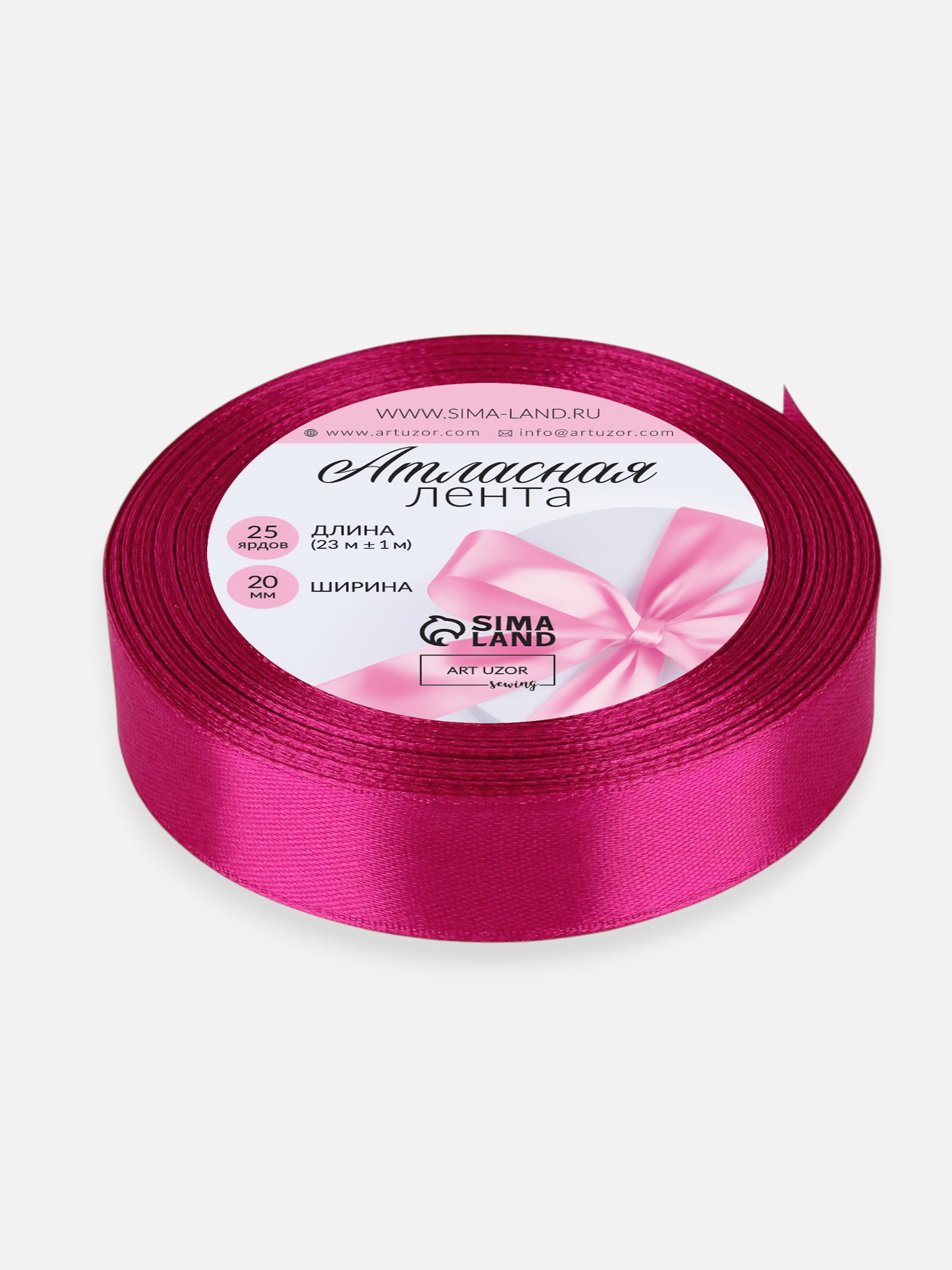 Лента атласная, 20 мм, 23+-1 м, ярко-розовая №95, 9x9x2 см., Арт Узор, Китай