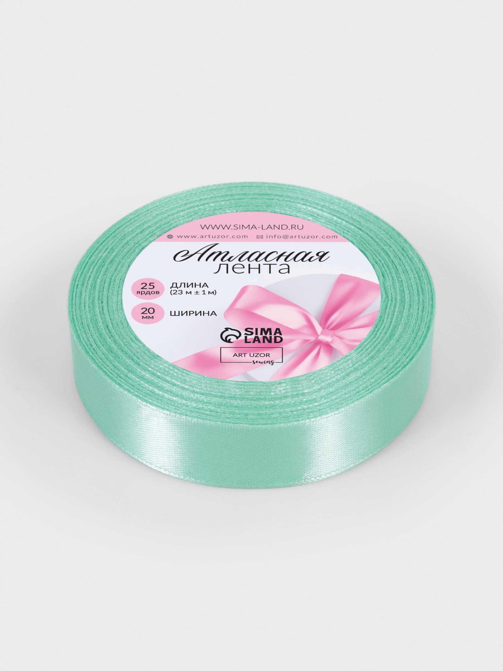 Лента атласная, 20 мм, 23+-1 м, нежно-зелёная №181, 9x9x2 см., Арт Узор, Китай