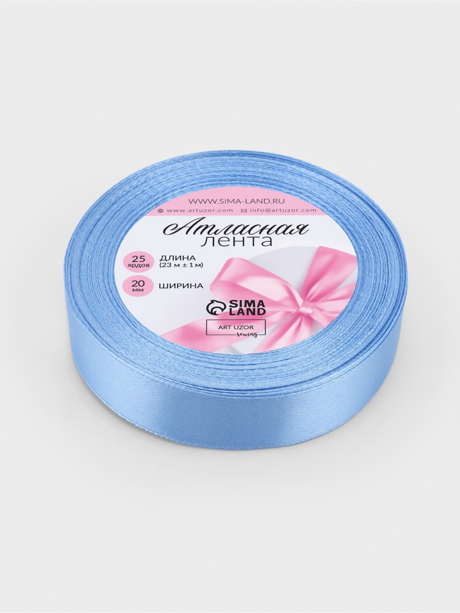 Лента атласная, 20 мм, 23+-1 м, небесно-голубая №278, 9x9x2 см., Арт Узор, Китай