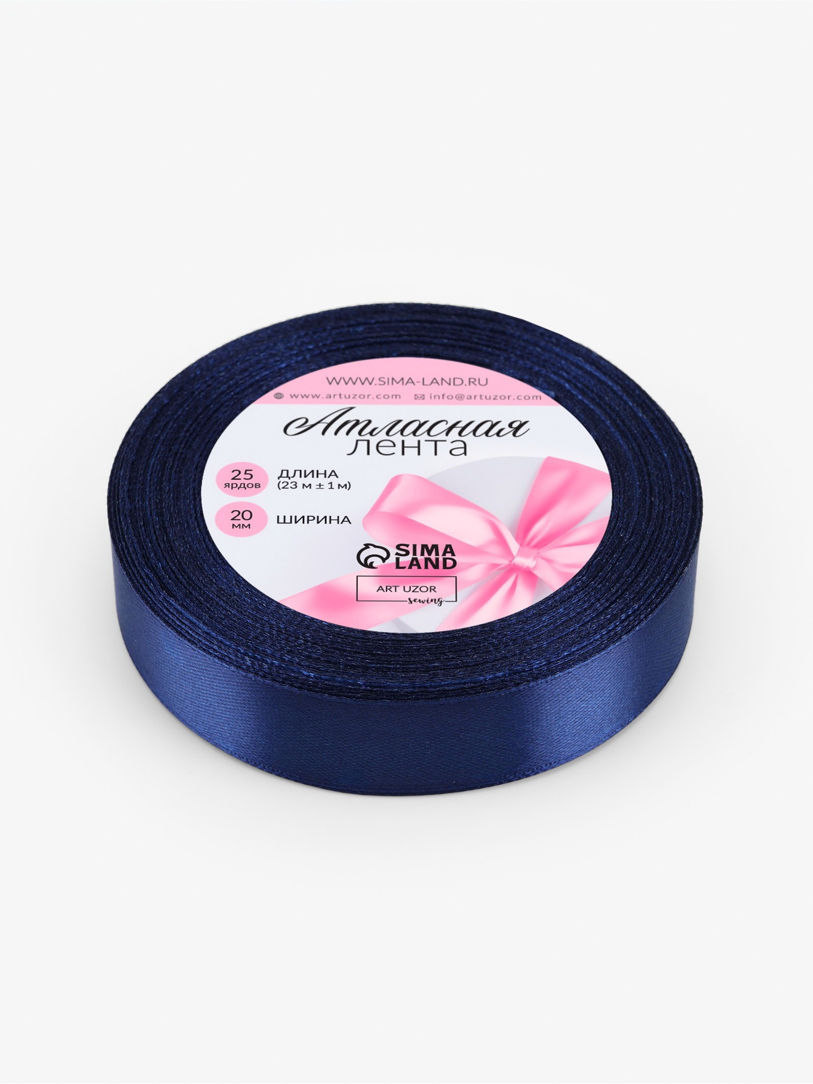 Лента атласная, 20 мм, 23+-1 м, синяя №120, 9x9x2 см., Арт Узор, Китай