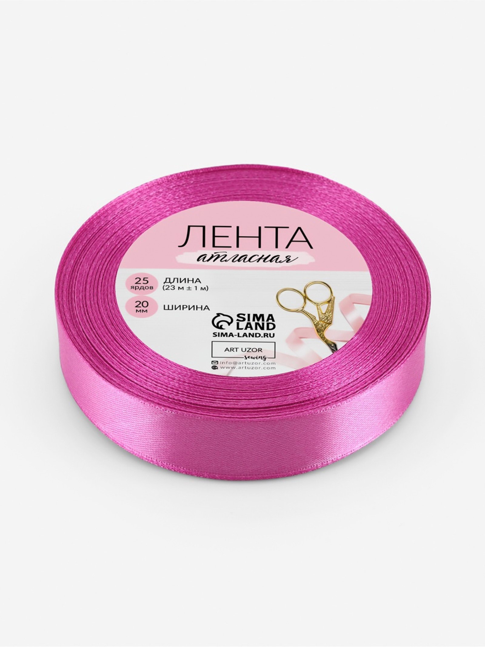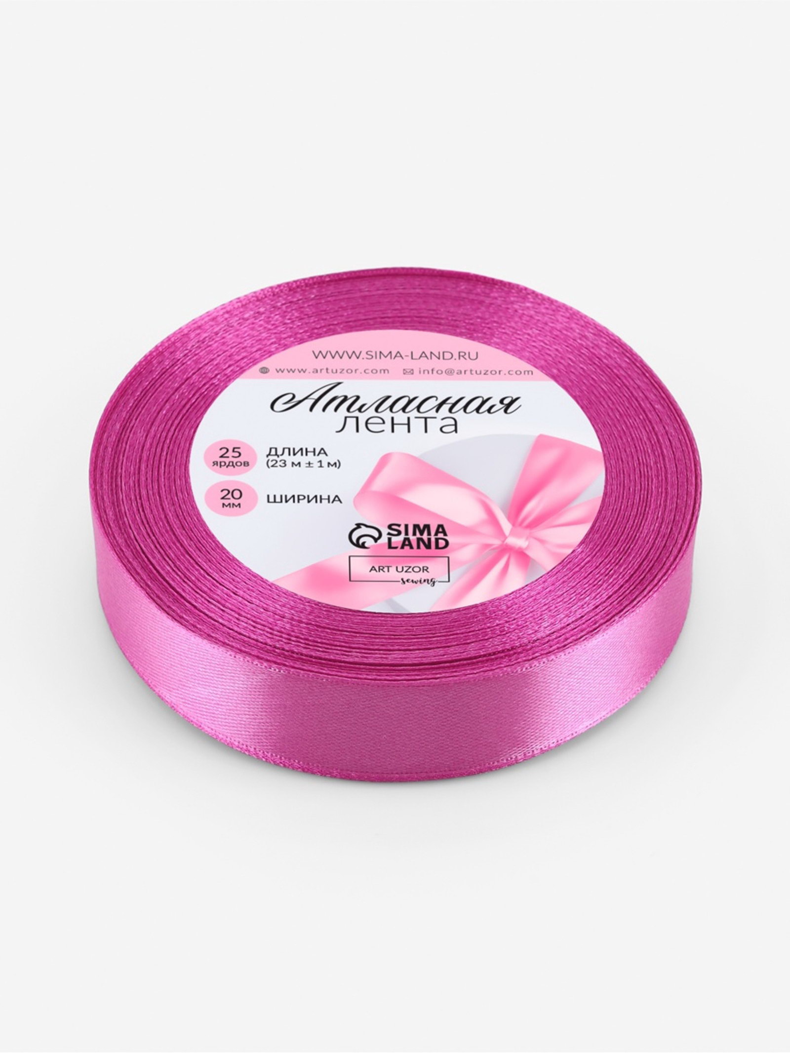 Лента атласная, 20 мм, 23+-1 м, фиалковая, 9x9x2 см., Арт Узор, Китай