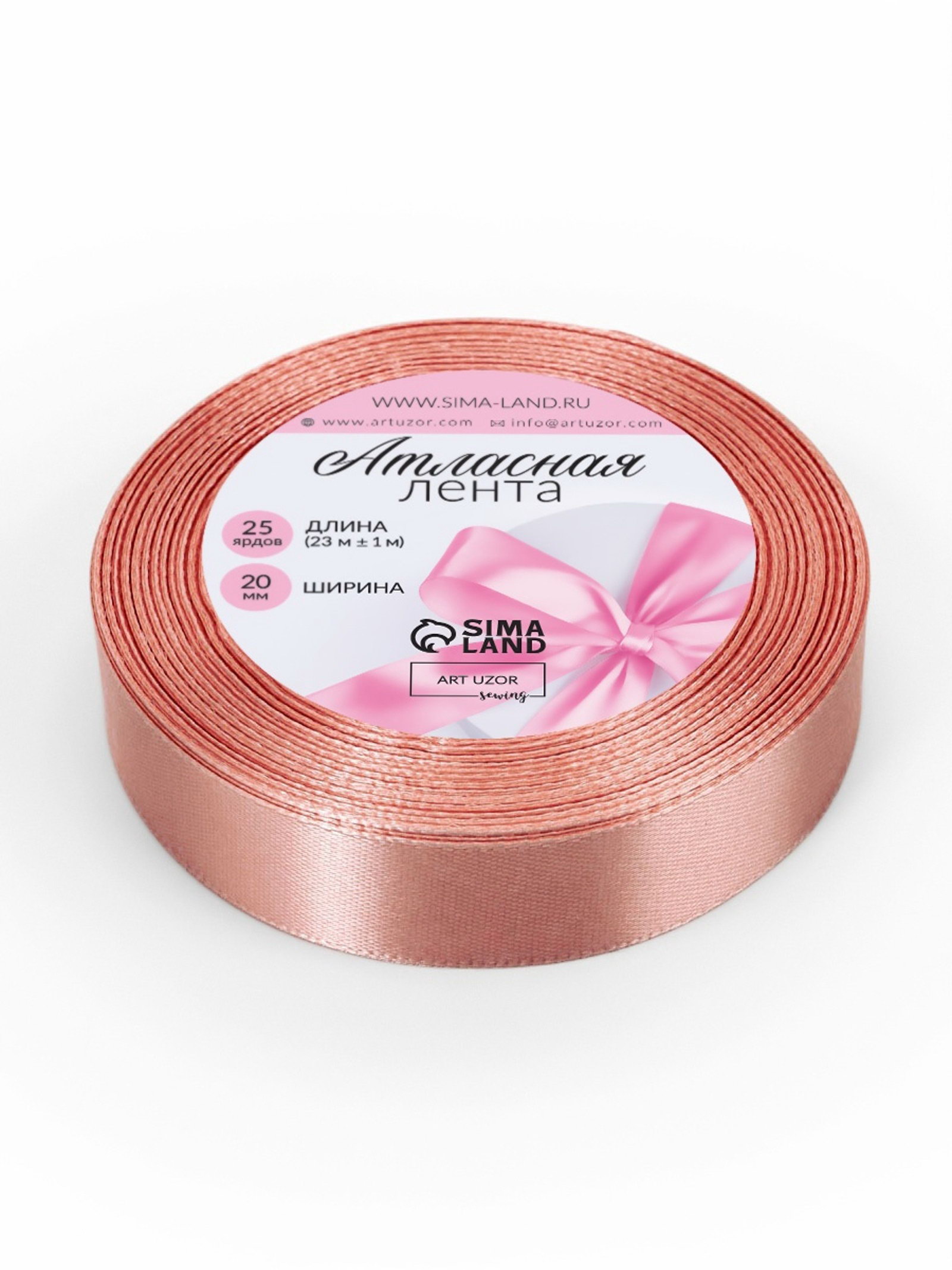Лента атласная, 20 мм, 23+-1 м, цвет розовое золото №146, 9x9x2 см., Арт Узор, Китай