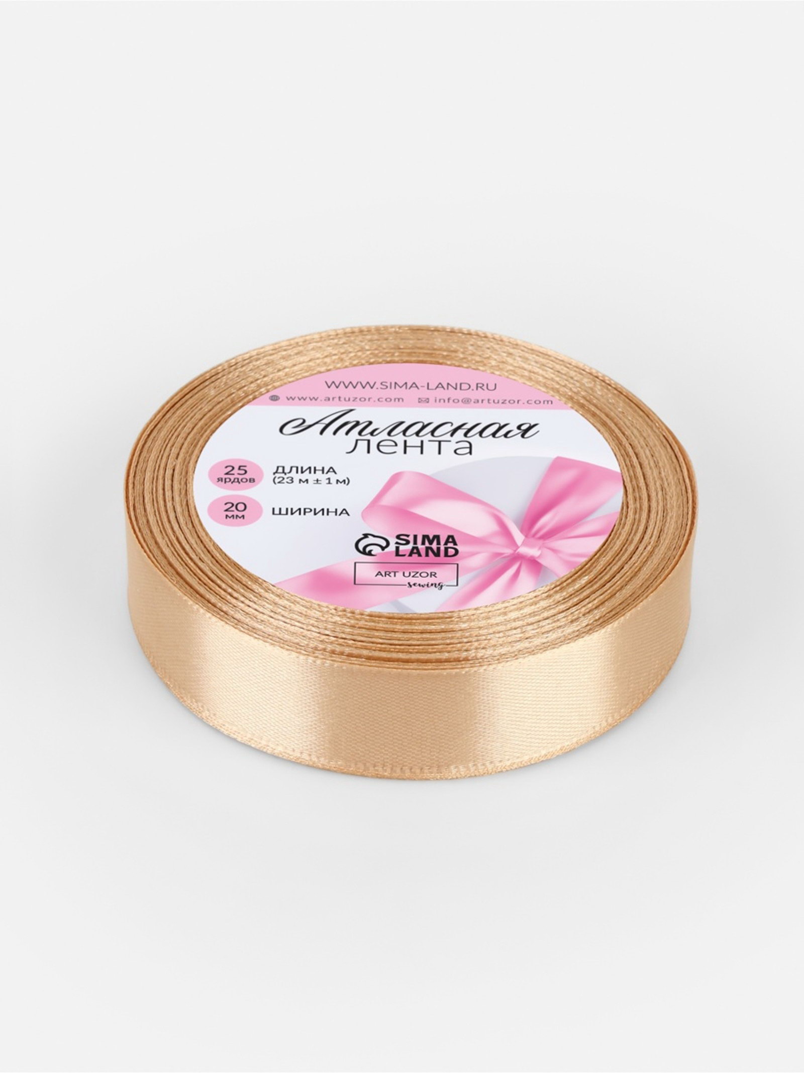 Лента атласная, 20 мм, 23+-1 м, бежевая №267, 9x9x2 см., Арт Узор, Китай