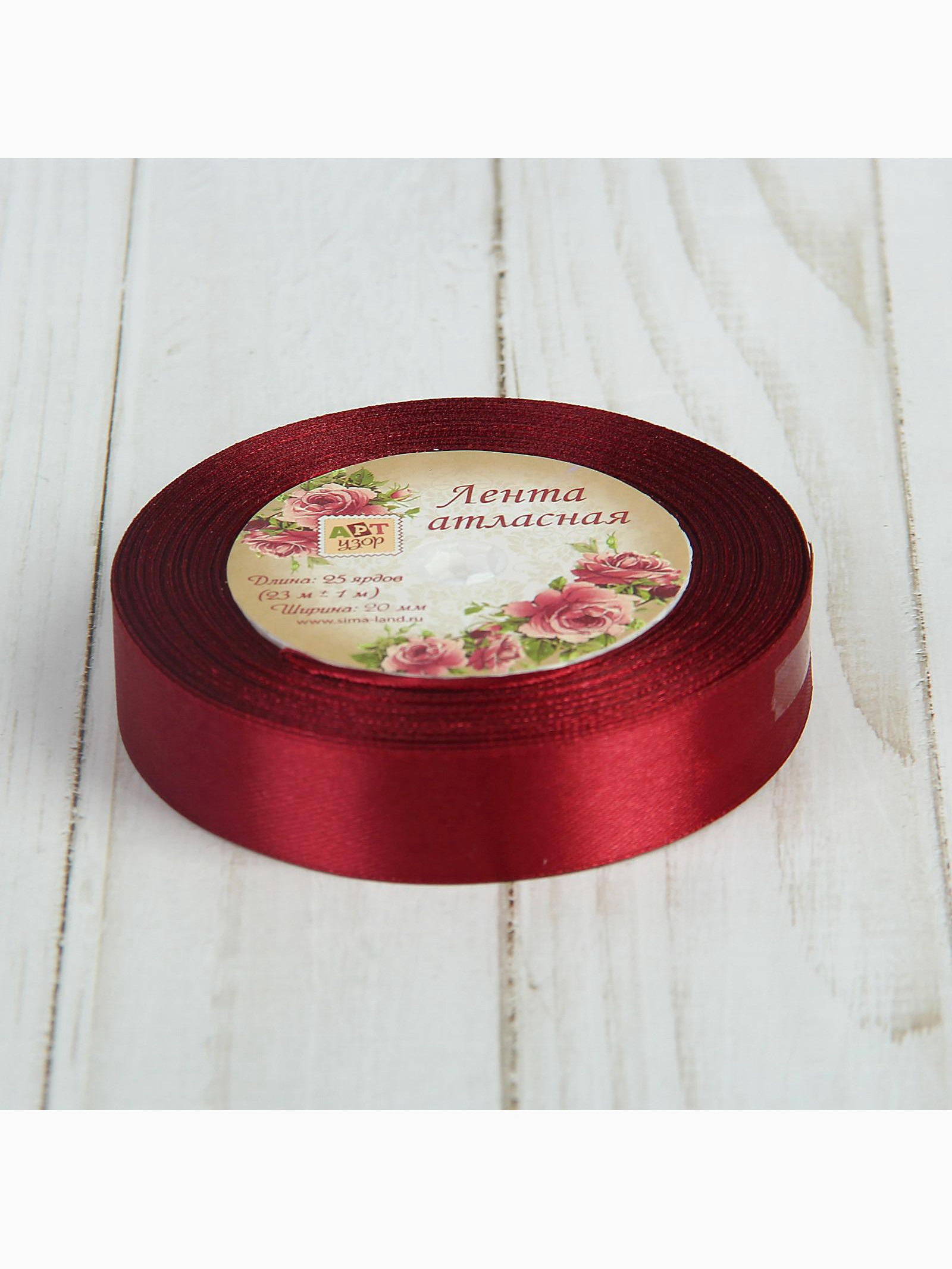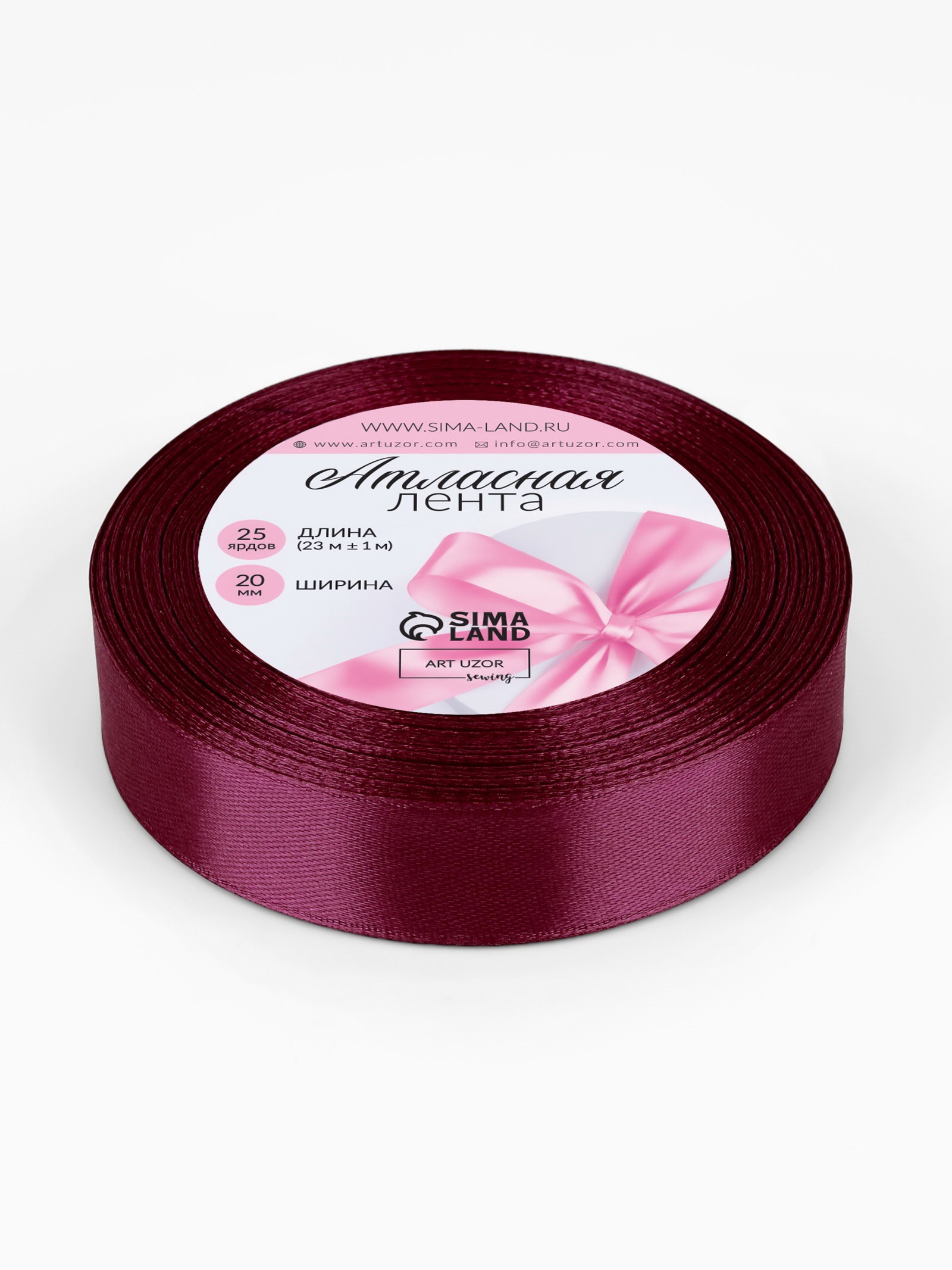 Лента атласная, 20 мм x 23+-1 м, винная №165, 9x9x2 см., Арт Узор, Китай