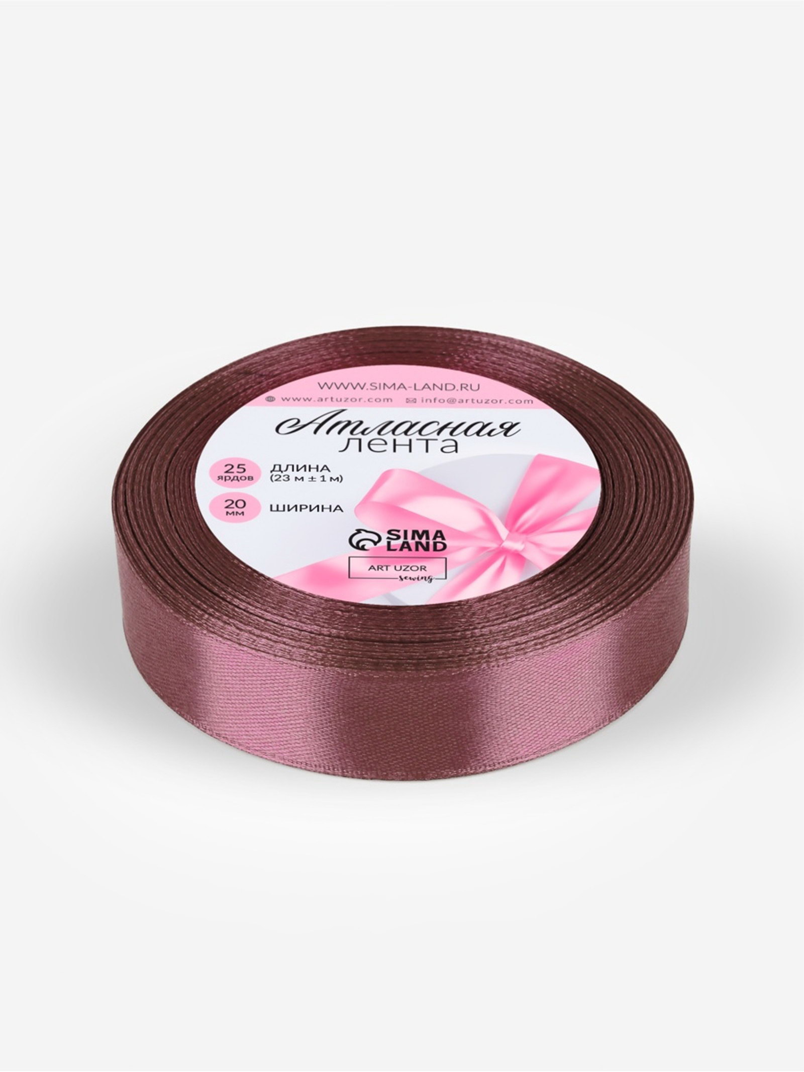 Лента атласная, 20 мм, 23+-1 м, цвет бурый №284, 9x9x2 см., Арт Узор, Китай