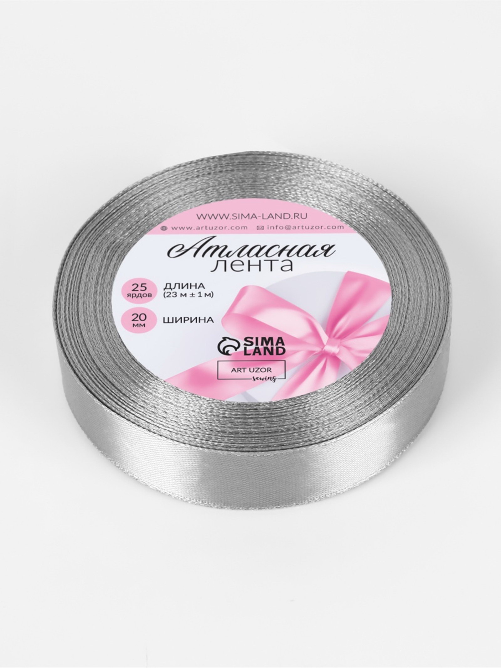 Лента атласная, 20 мм, 23+-1 м, серая №59, 9x9x2 см., Арт Узор, Китай