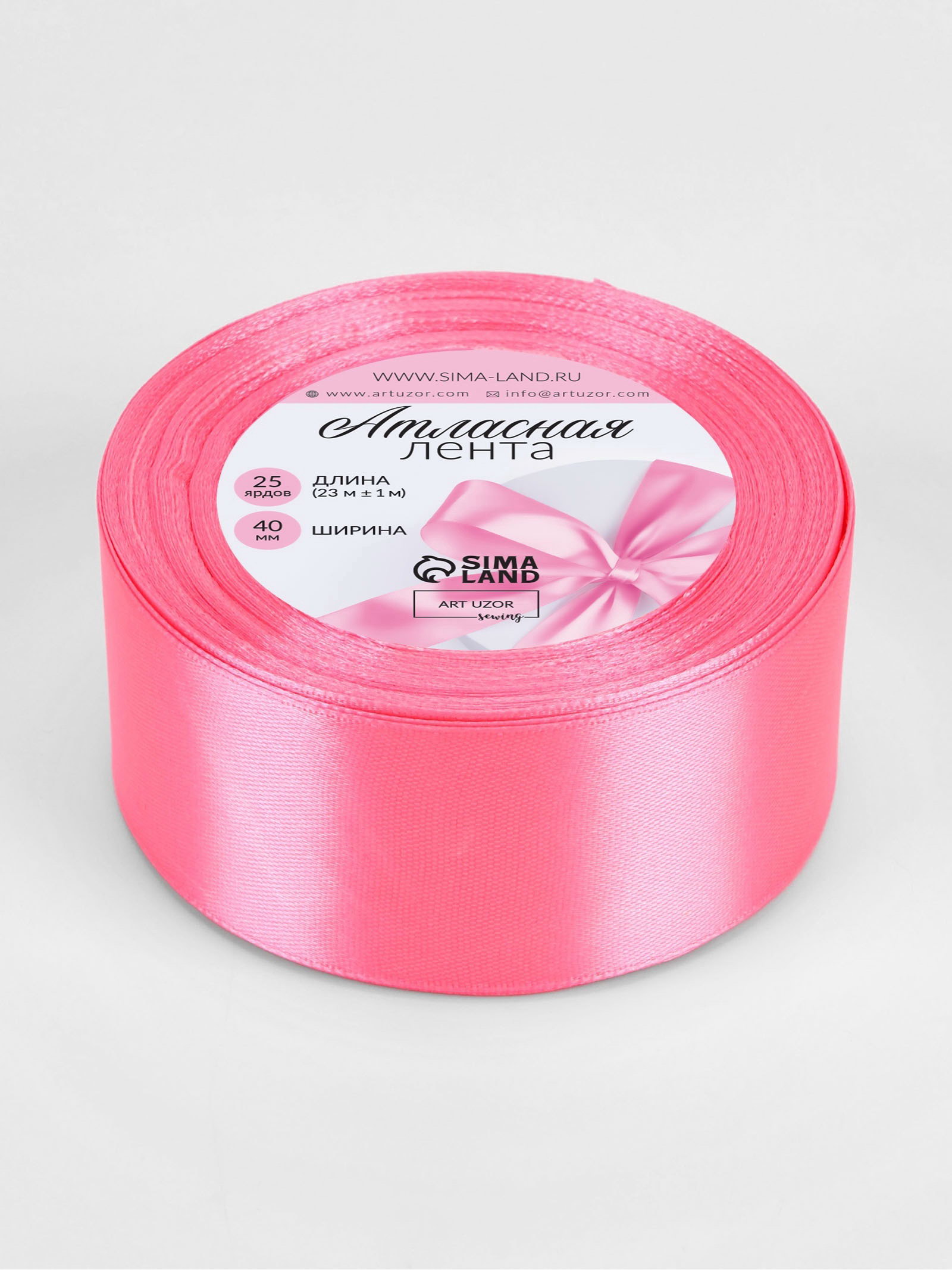 Лента атласная, 40 мм, 23+-1 м, насыщенно-розовая №05, 9x9x4 см., Арт Узор, Китай