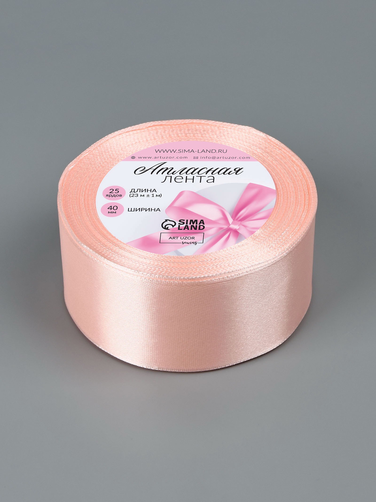 Лента атласная, 40 мм, 23+-1 м, пастельно-розовая, 9x9x4 см., Арт Узор, Китай