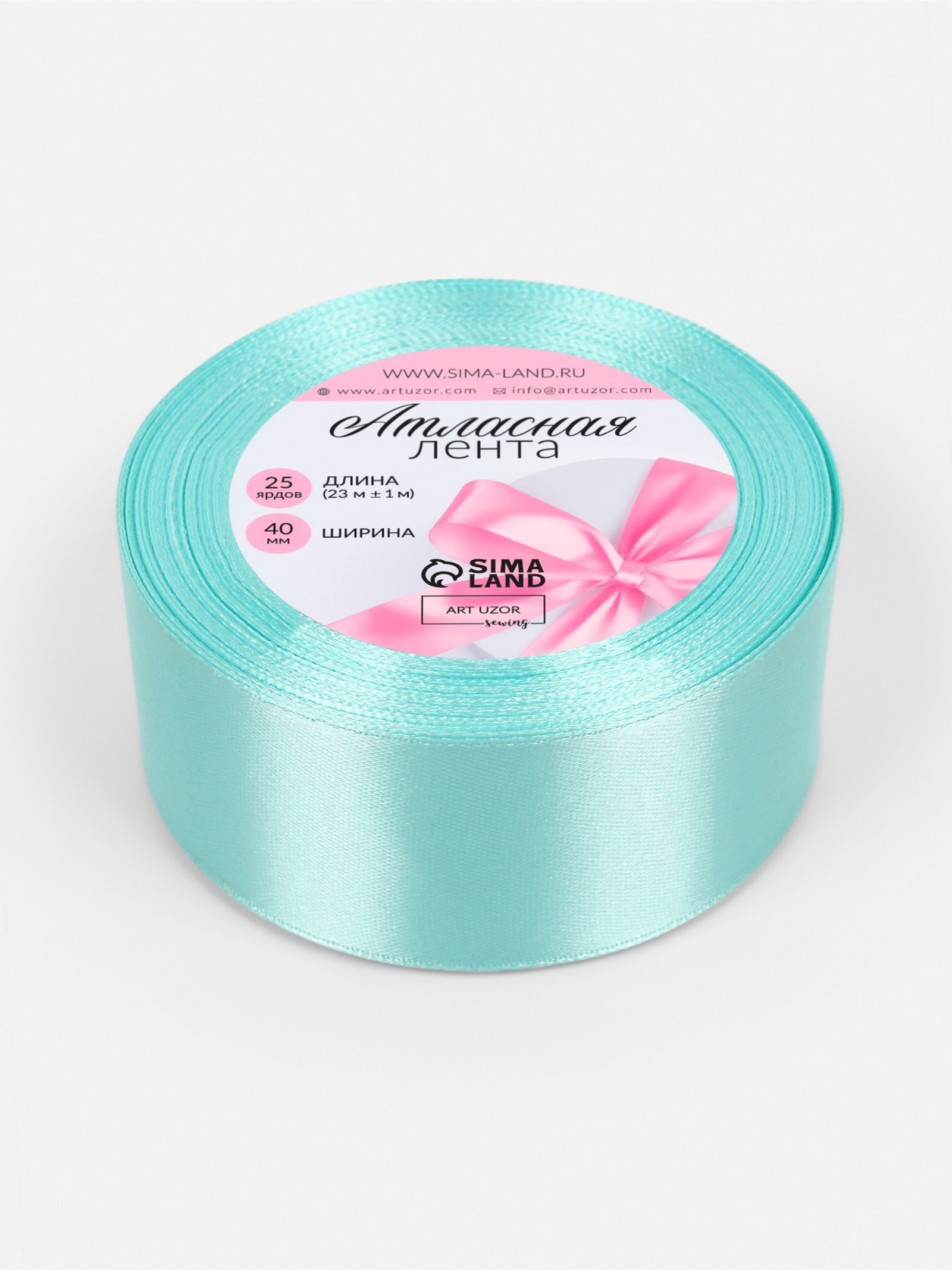 Лента атласная, 40 мм, 23+-1 м, голубая №211, 9x9x4 см., Арт Узор, Китай