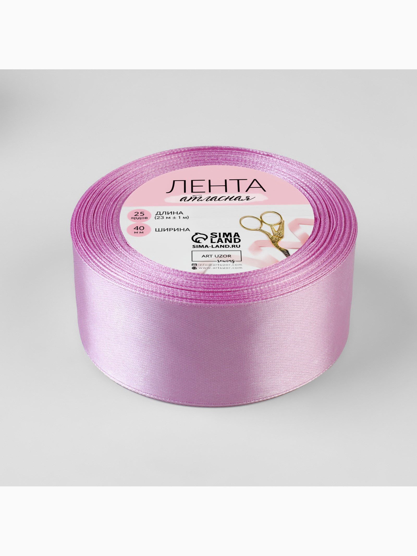 Лента атласная, 40 мм, 23+-1 м, светло-сиреневая, 9x9x4 см., Арт Узор, Китай