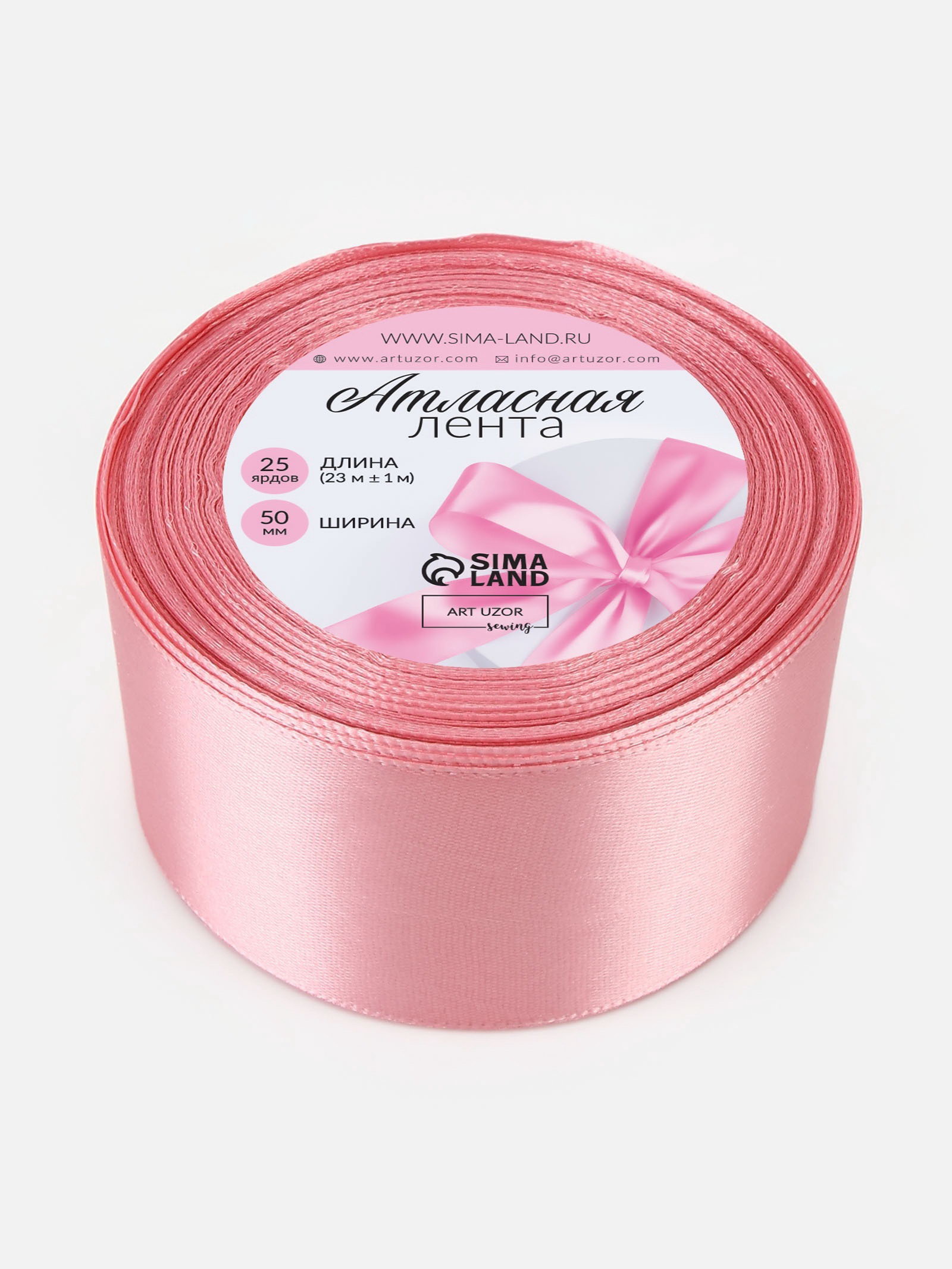Лента атласная, 50 мм, 23+-1 м, жемчужно-розовая, 9x9x5 см., Арт Узор, Китай