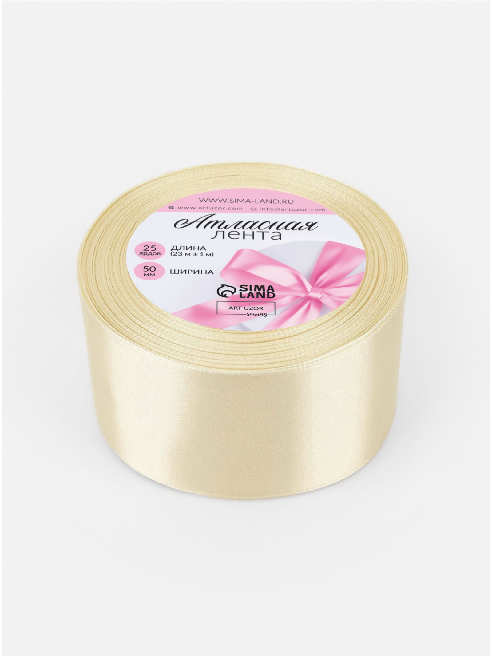 Лента атласная, 50 мм, 23+-1 м, нежно-бежевая, 9x9x5 см., Арт Узор, Китай