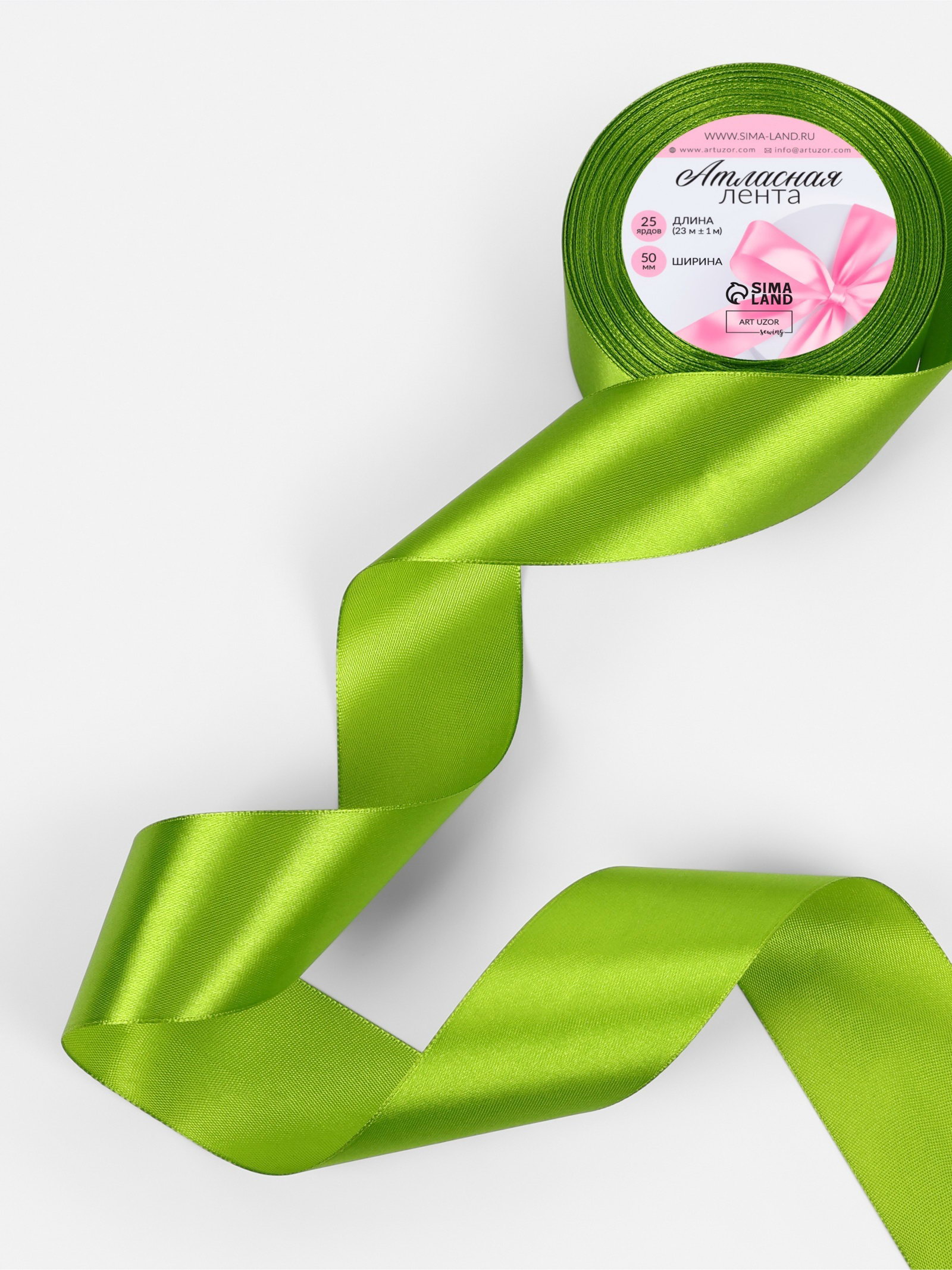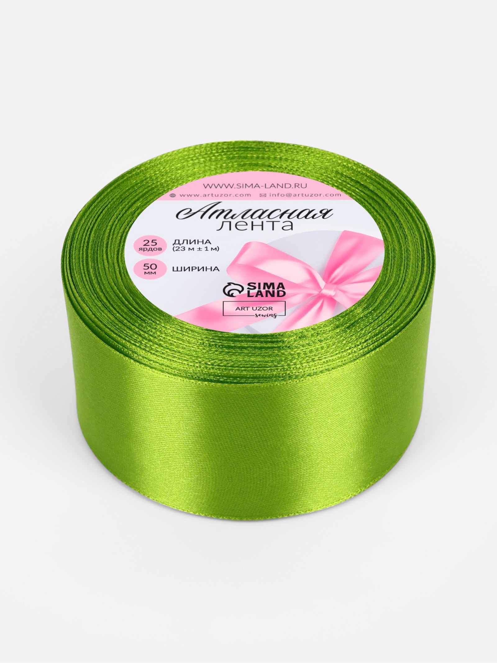 Лента атласная, 50 мм, 23+-1 м, светло-зелёная, 9x9x5 см., Арт Узор, Китай