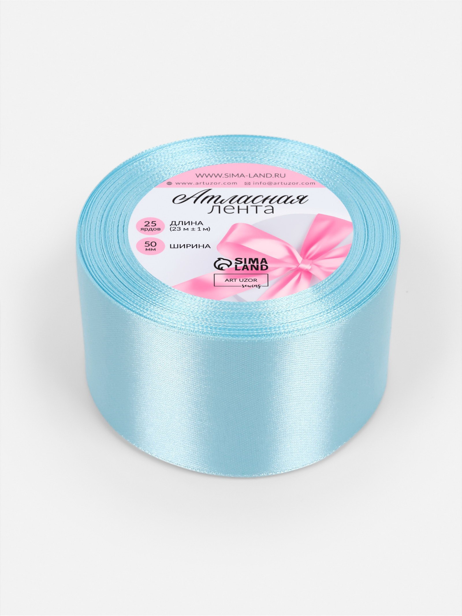 Лента атласная, 50 мм, 23+-1 м, голубая №211, 9x9x5 см., Арт Узор, Китай