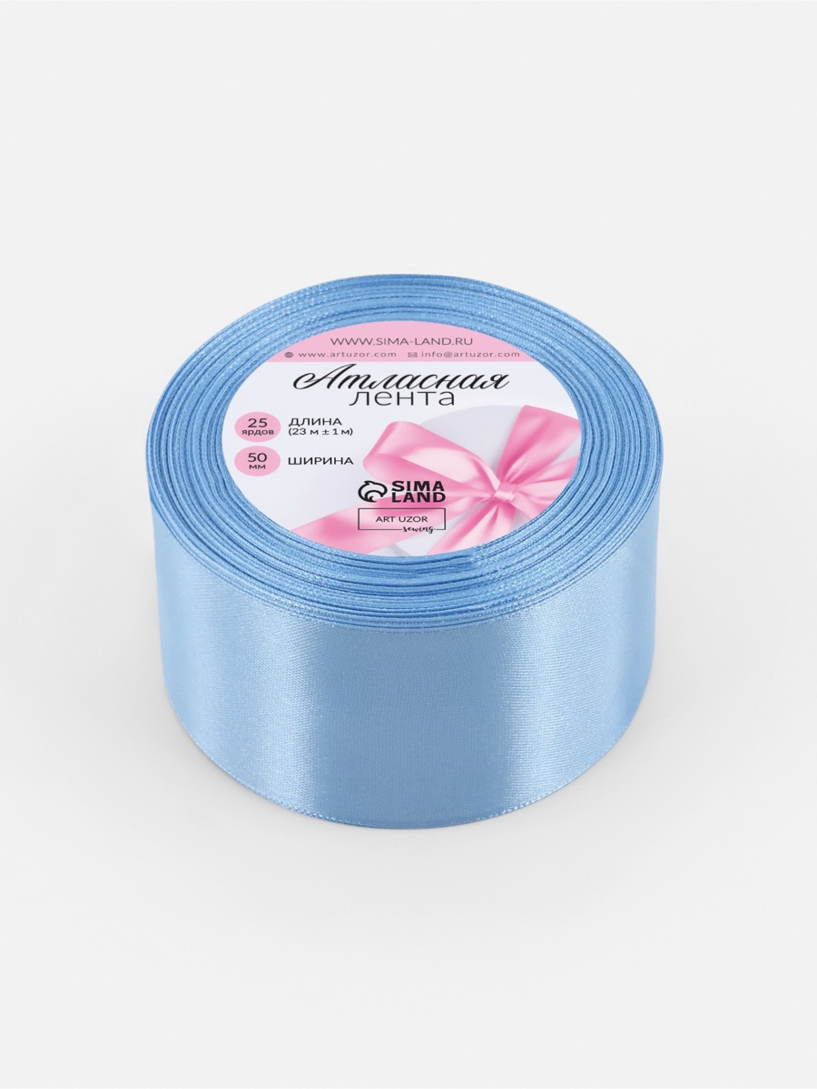 Лента атласная, 50 мм, 23+-1 м, небесно-голубая №278, 9x9x5 см., Арт Узор, Китай