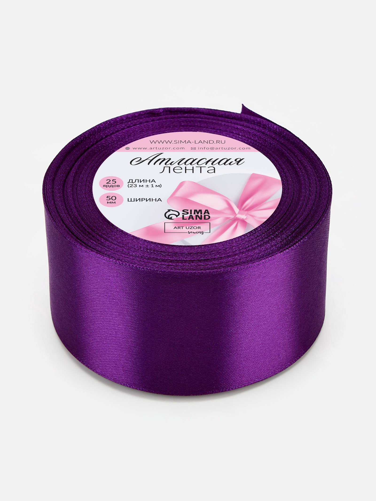Лента атласная, 50 мм, 23+-1 м, фиолетовая, 9x9x5 см., Арт Узор, Китай