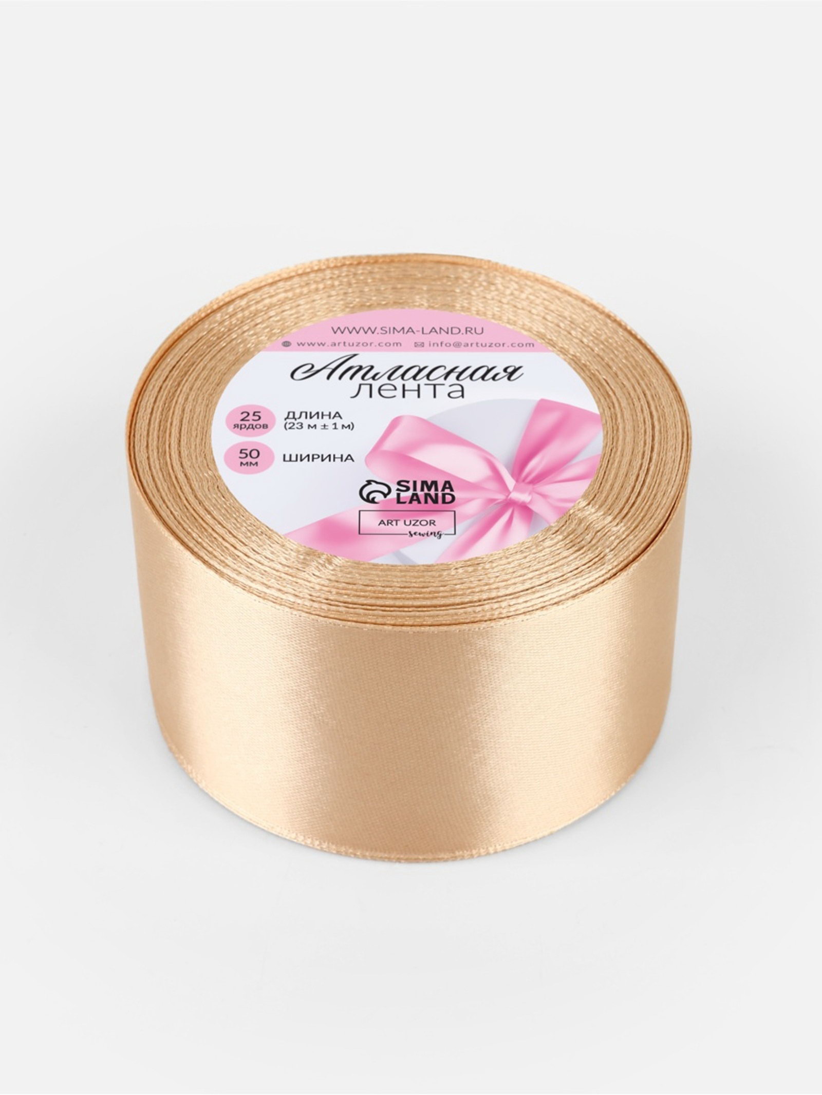 Лента атласная, 50 мм, 23+-1 м, бежевая №267, 9x9x5 см., Арт Узор, Китай