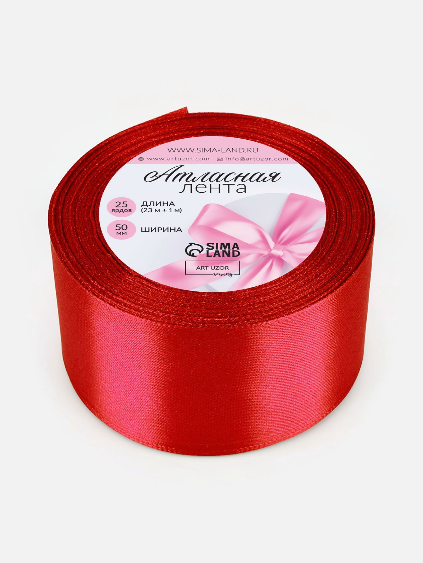 Лента атласная, 50 мм, 23+-1 м, красная №26, 9x9x5 см., Арт Узор, Китай