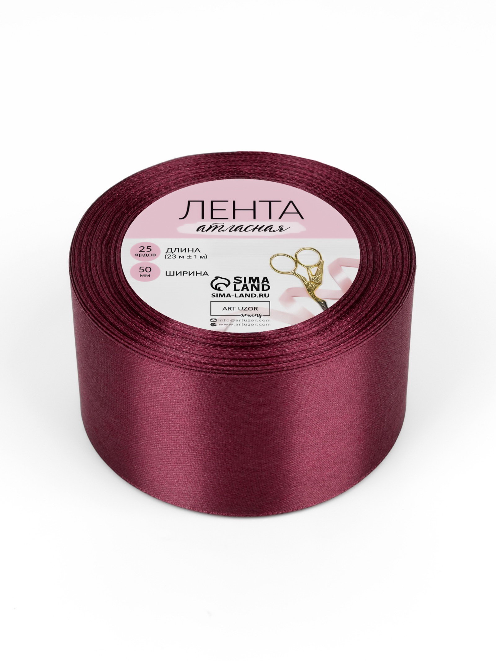 Лента атласная, 50 мм, 23+-1 м, винная №165, 9x9x5 см., Арт Узор, Китай