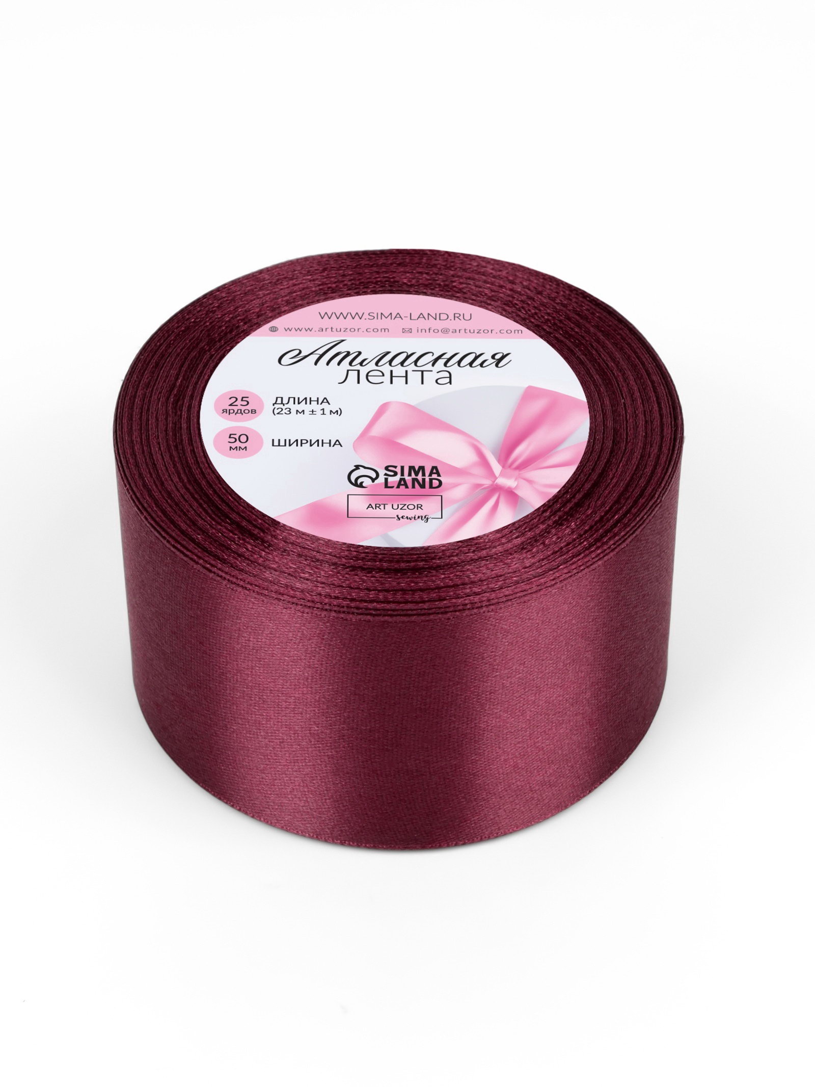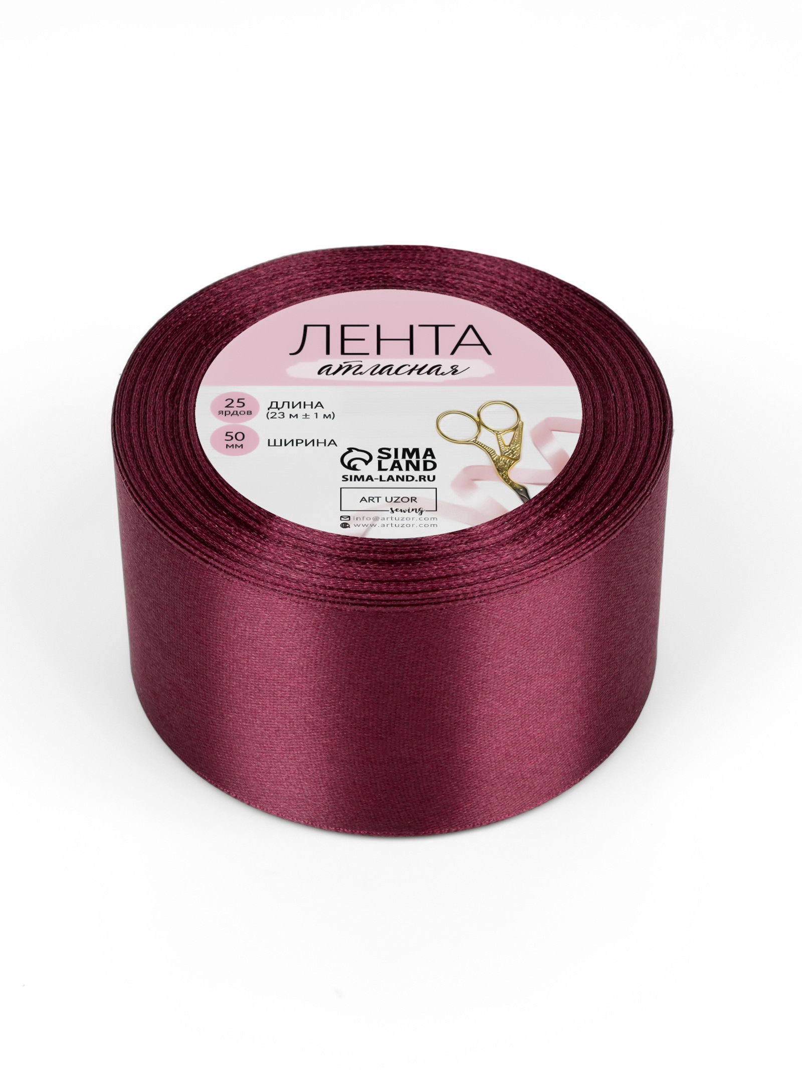 Лента атласная, 50 мм x 23+-1 м, винная №165, 9x9x5 см., Арт Узор, Китай