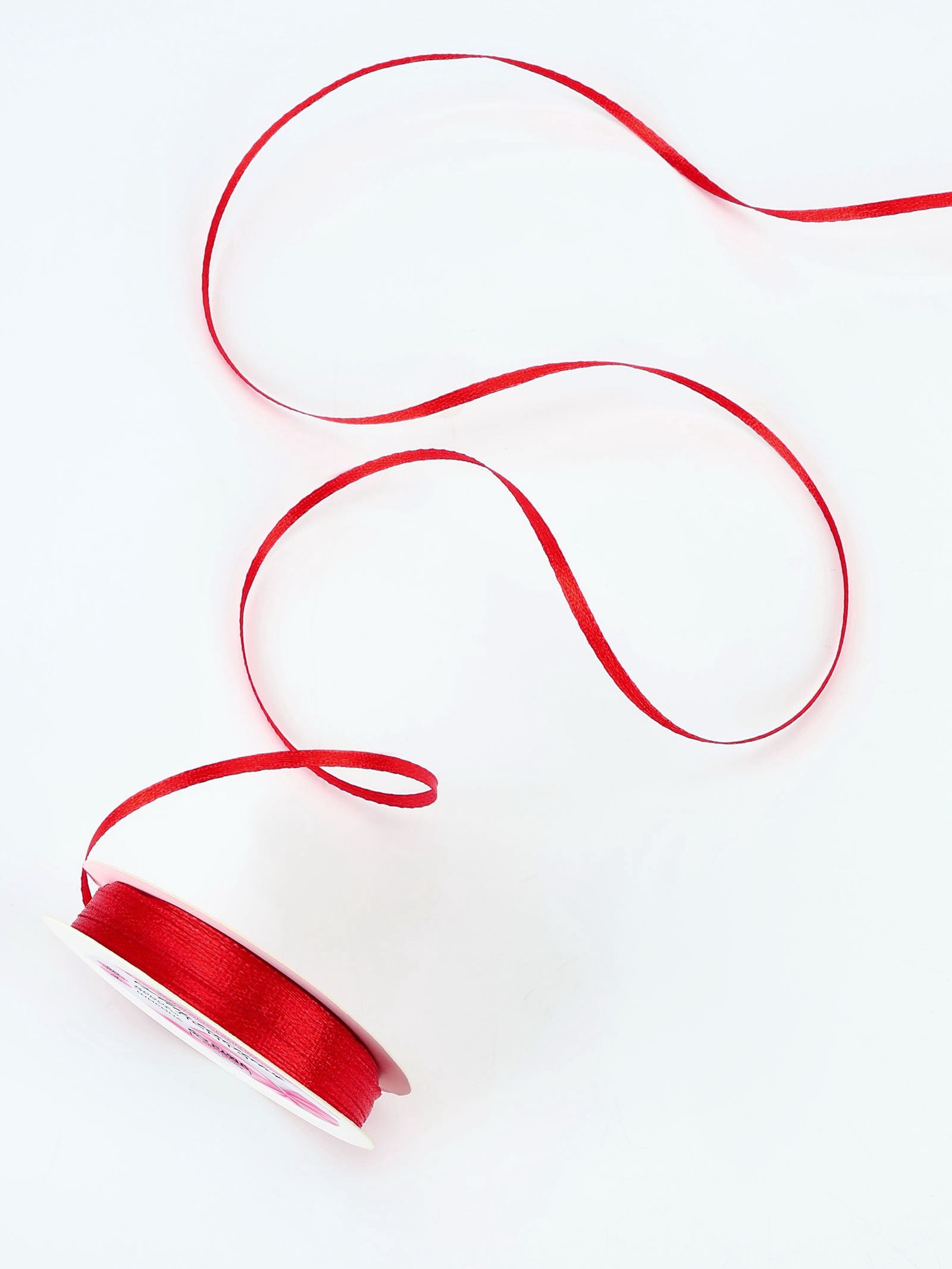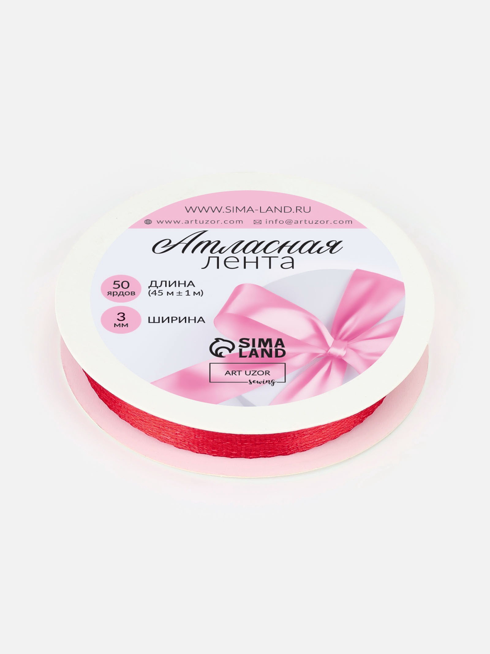 Лента атласная, 3 мм, 45+-1 м, красная №26, 9x9x1.5 см., Арт Узор, Китай
