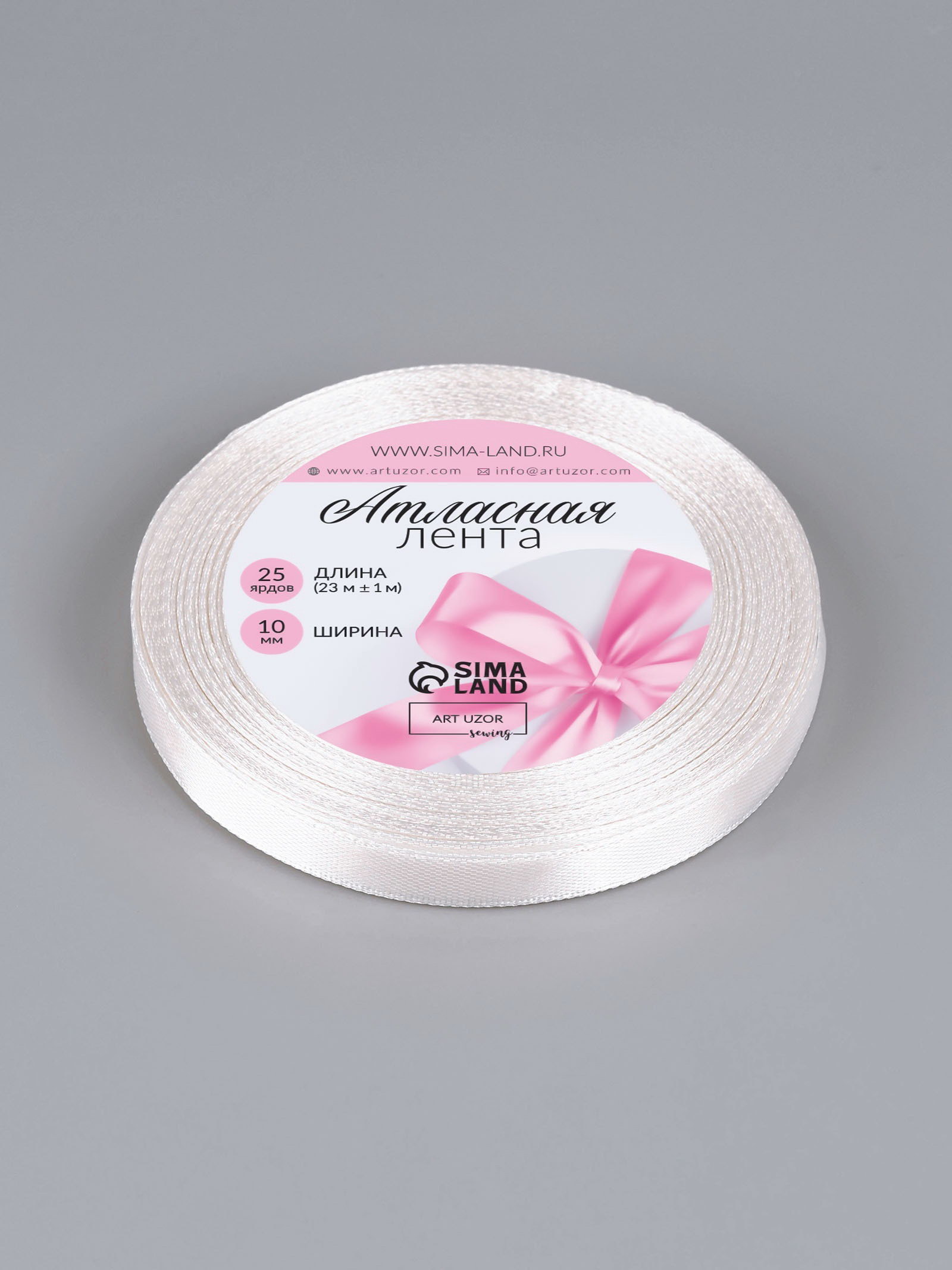Лента атласная, 10 мм, 23+-1 м, белая №01, 9x9x1 см., Арт Узор, Китай
