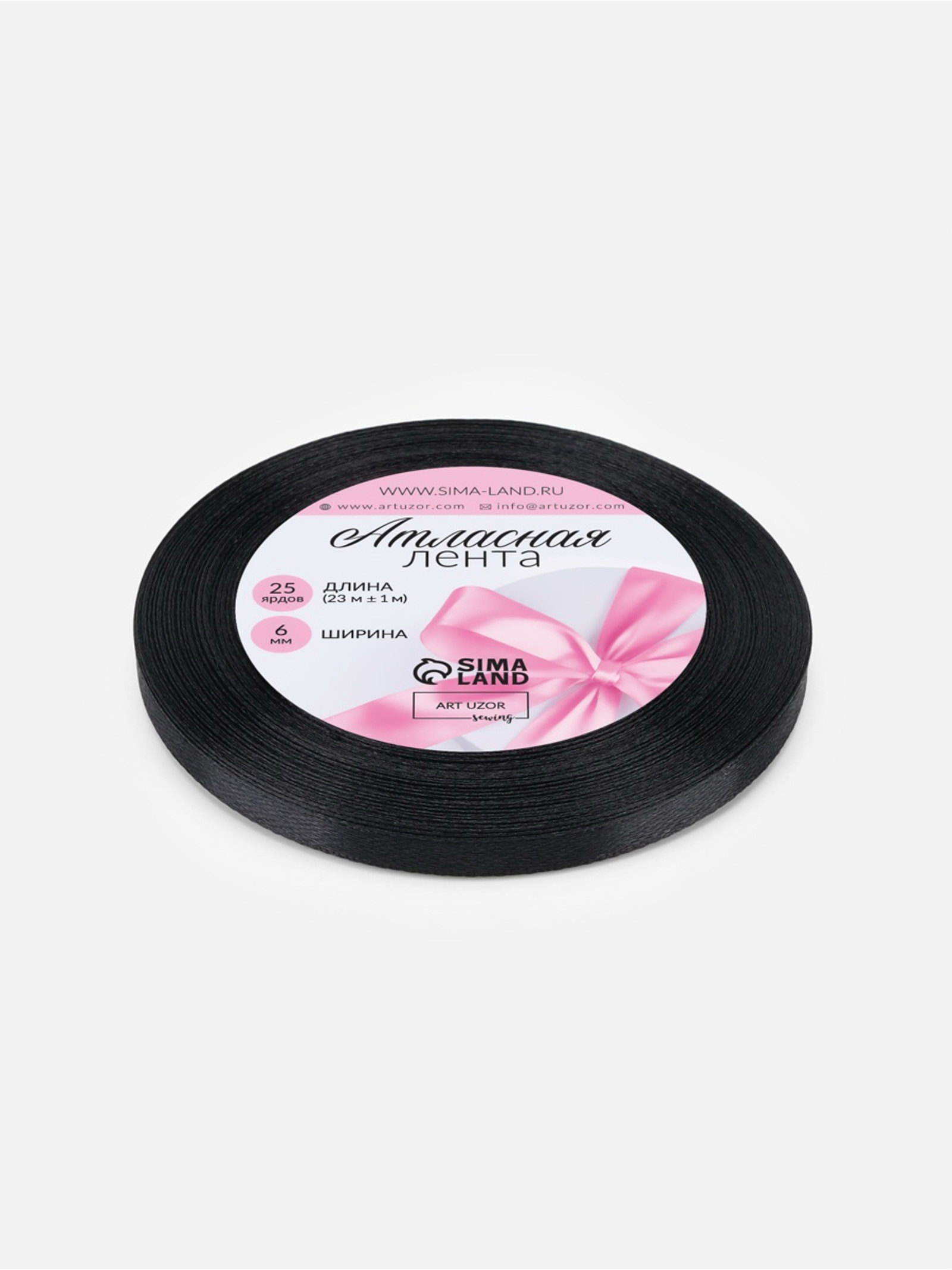 Лента атласная, 6 мм, 23+-1 м, чёрная №39, 9x9x0.6 см., Арт Узор, Китай