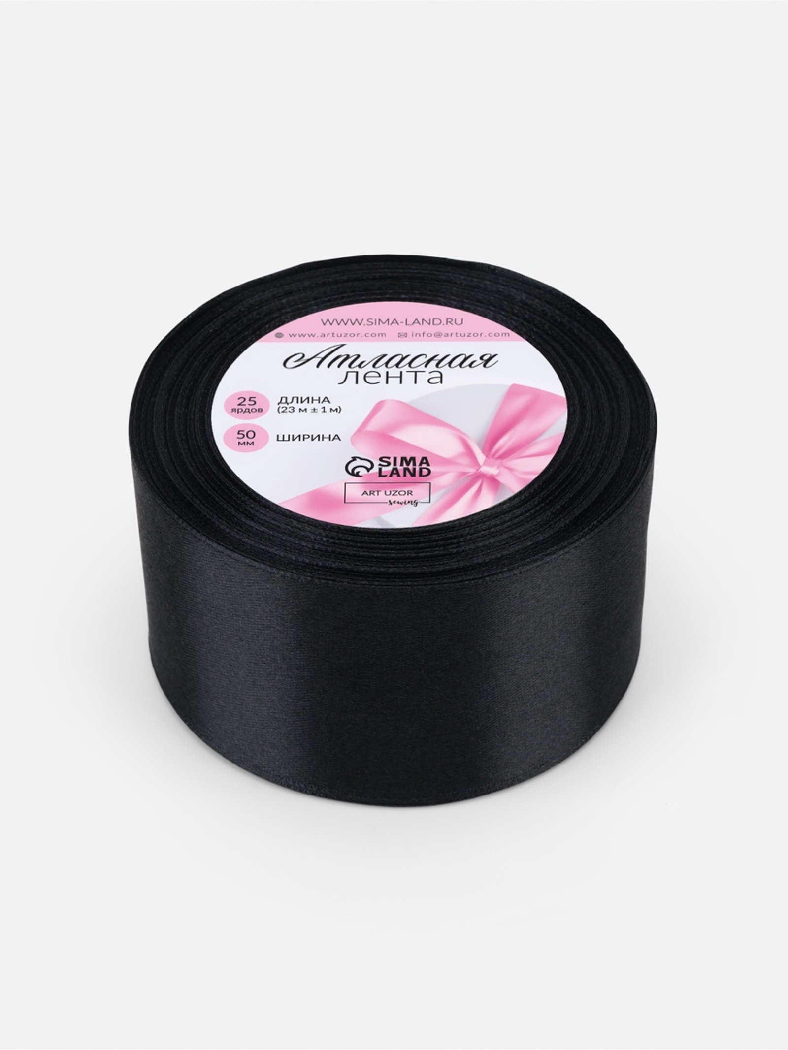 Лента атласная, 50 мм, 23+-1 м, чёрная №39, 9x9x5 см., Арт Узор, Китай
