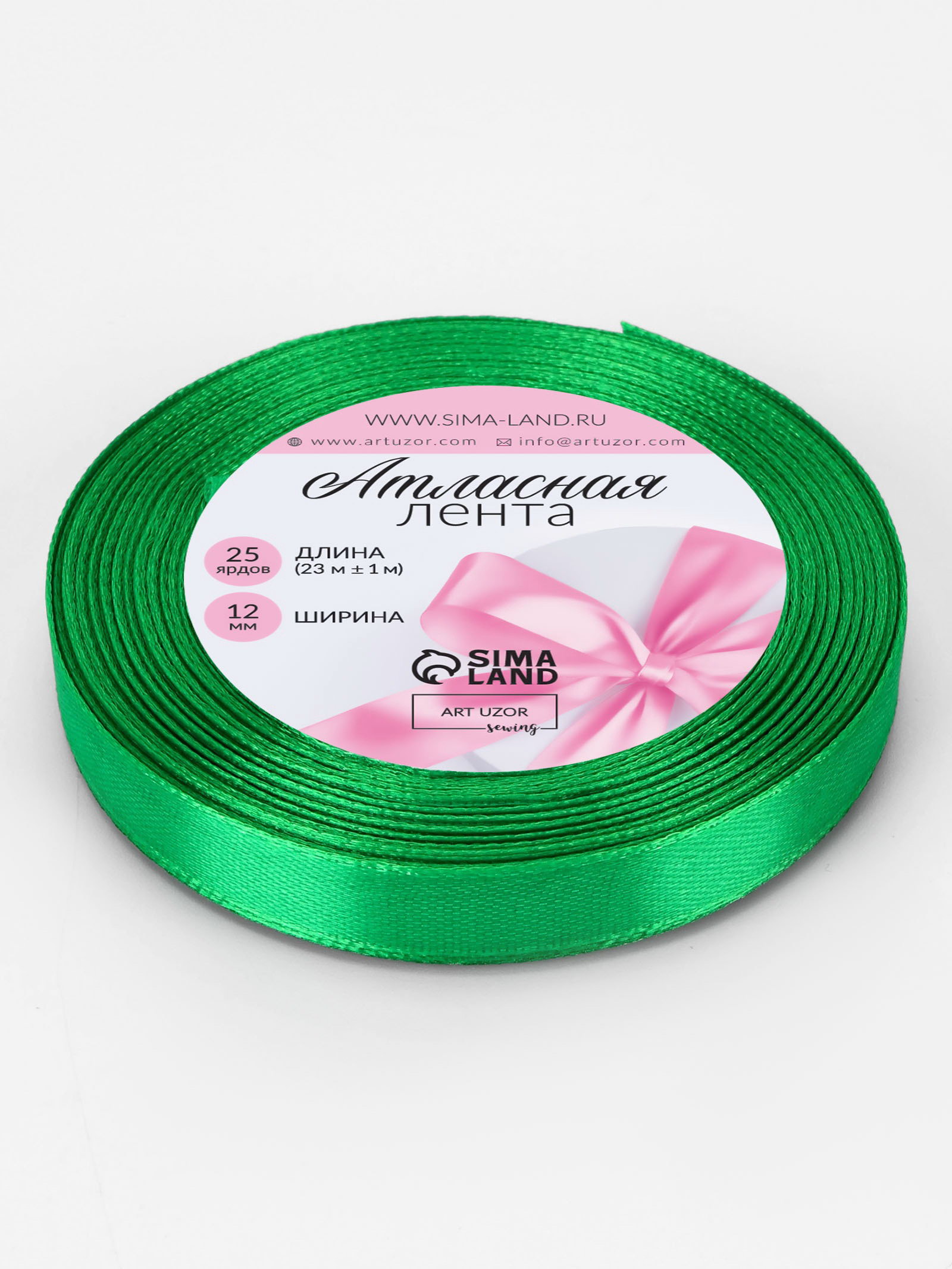 Лента атласная, 12 мм, 23+-1 м, зелёная №19, 9x9x1.2 см., Арт Узор, Китай