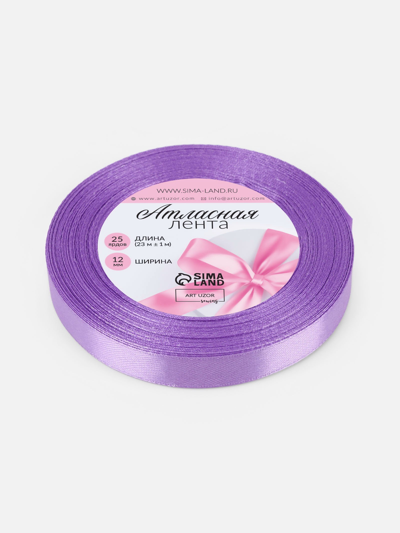 Лента атласная, 12 мм, 23+-1 м, сиреневая, 9x9x1.2 см., Арт Узор, Китай