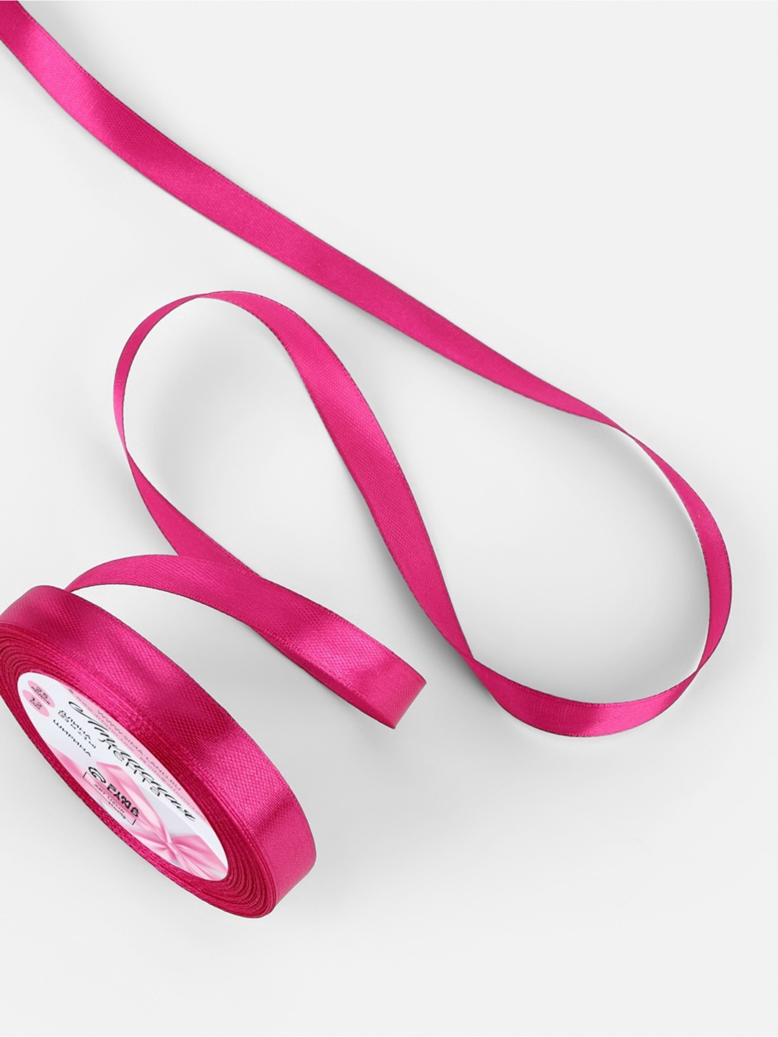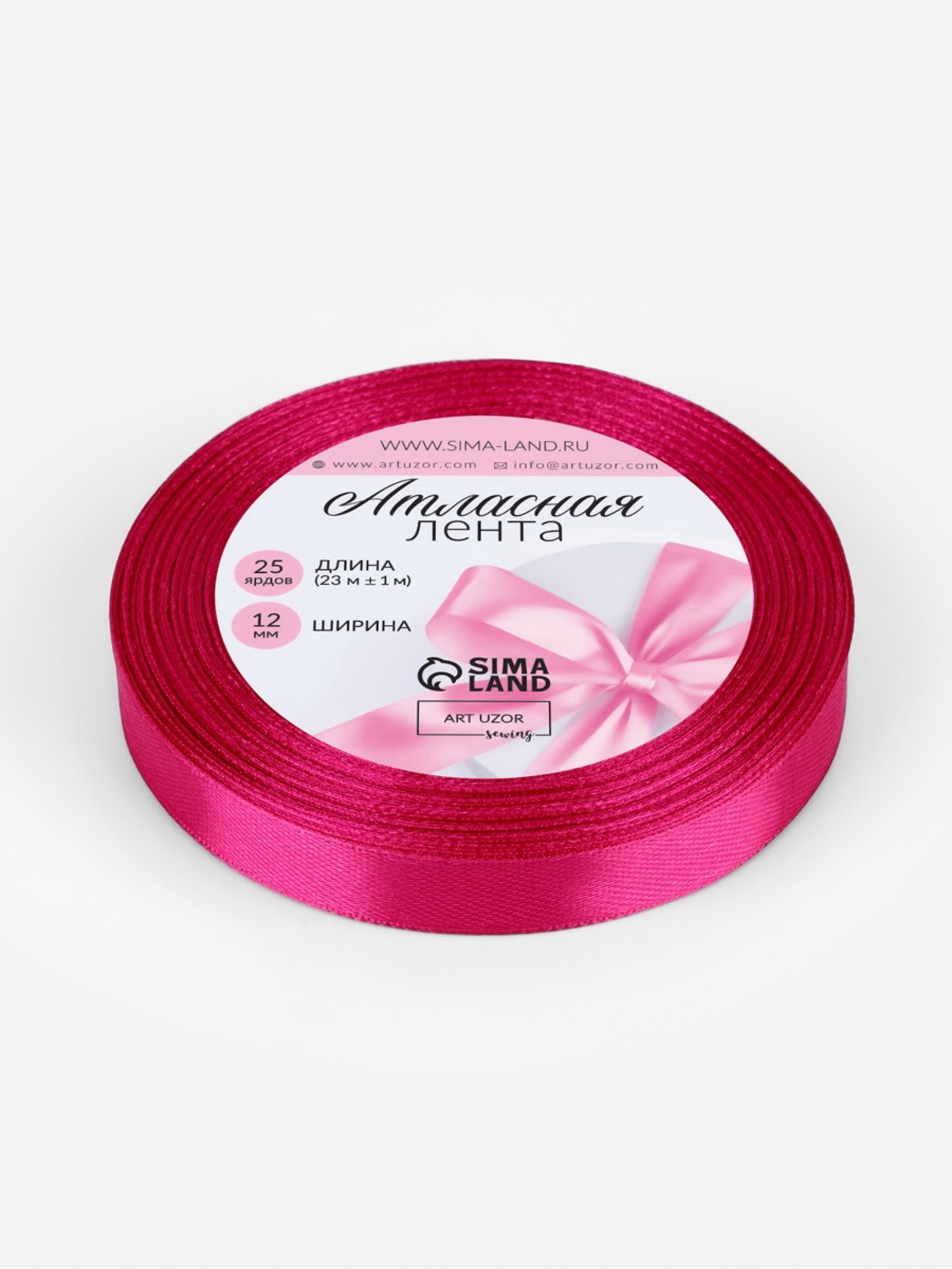 Лента атласная, 12 мм, 23+-1 м, ярко-розовая №27, 9x9x1.2 см., Арт Узор, Китай