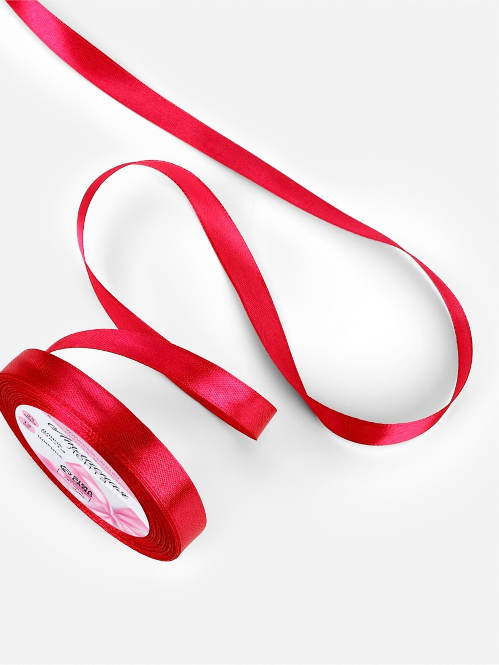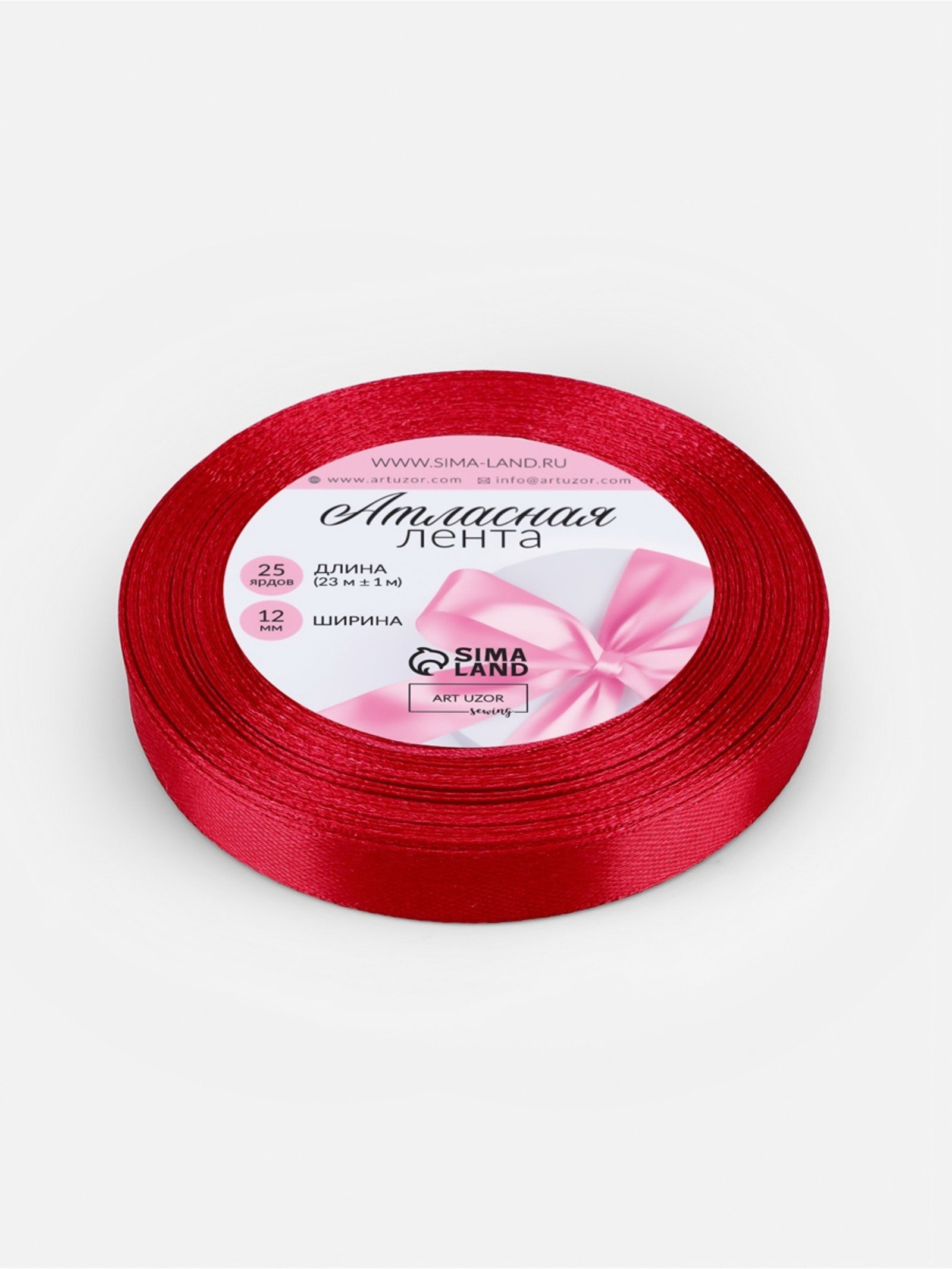 Лента атласная, 12 мм, 23+-1 м, красная №33, 9x9x1.2 см., Арт Узор, Китай