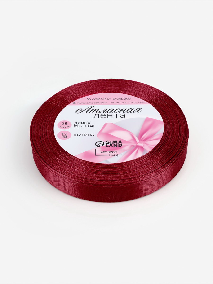 Лента атласная, 12 мм, 23+-1 м, бордовая №37, 9x9x1.2 см., Арт Узор, Китай