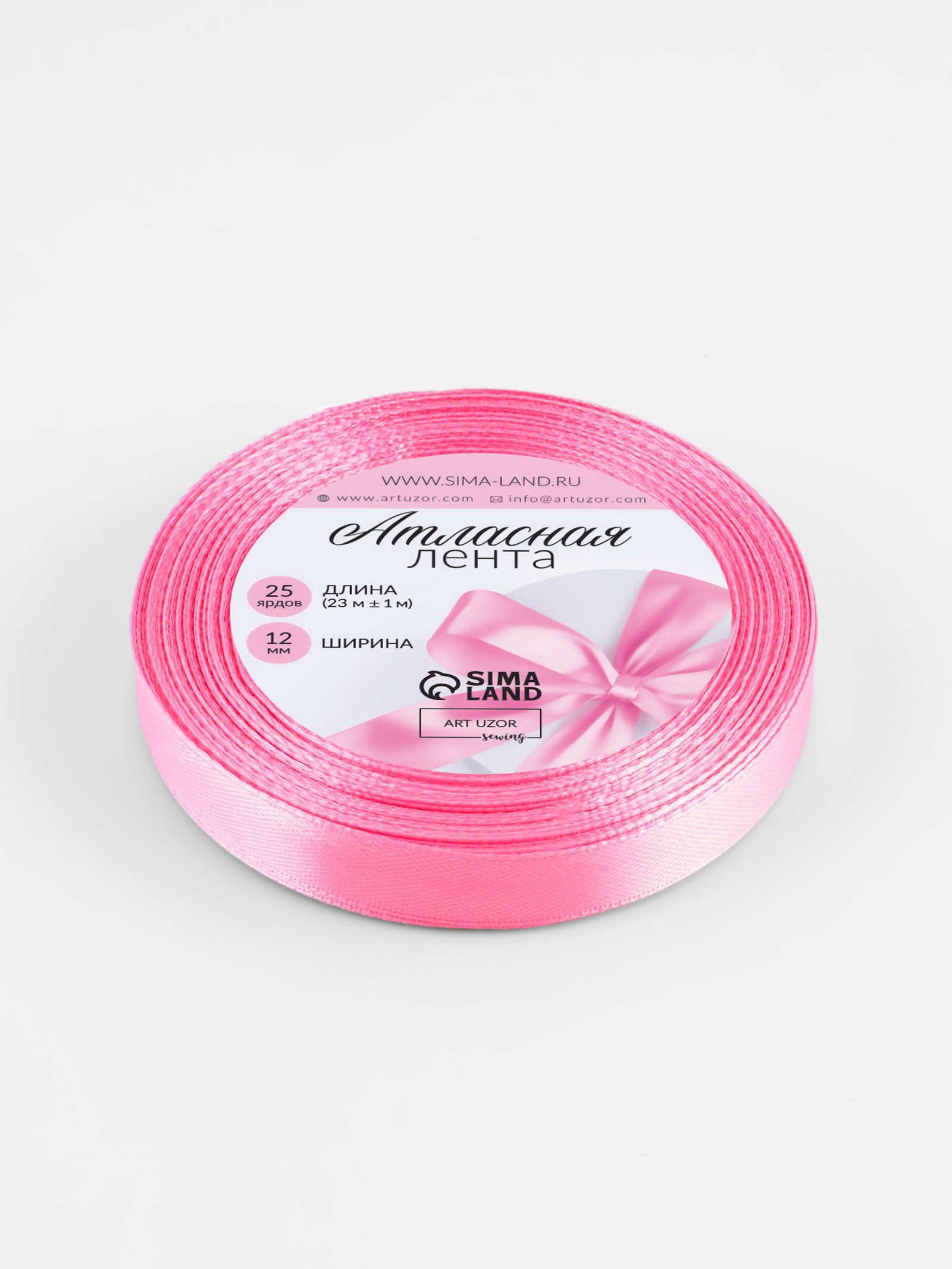 Лента атласная, 12 мм, 23+-1 м, нежно-розовая №147, 9x9x1.2 см., Арт Узор, Китай
