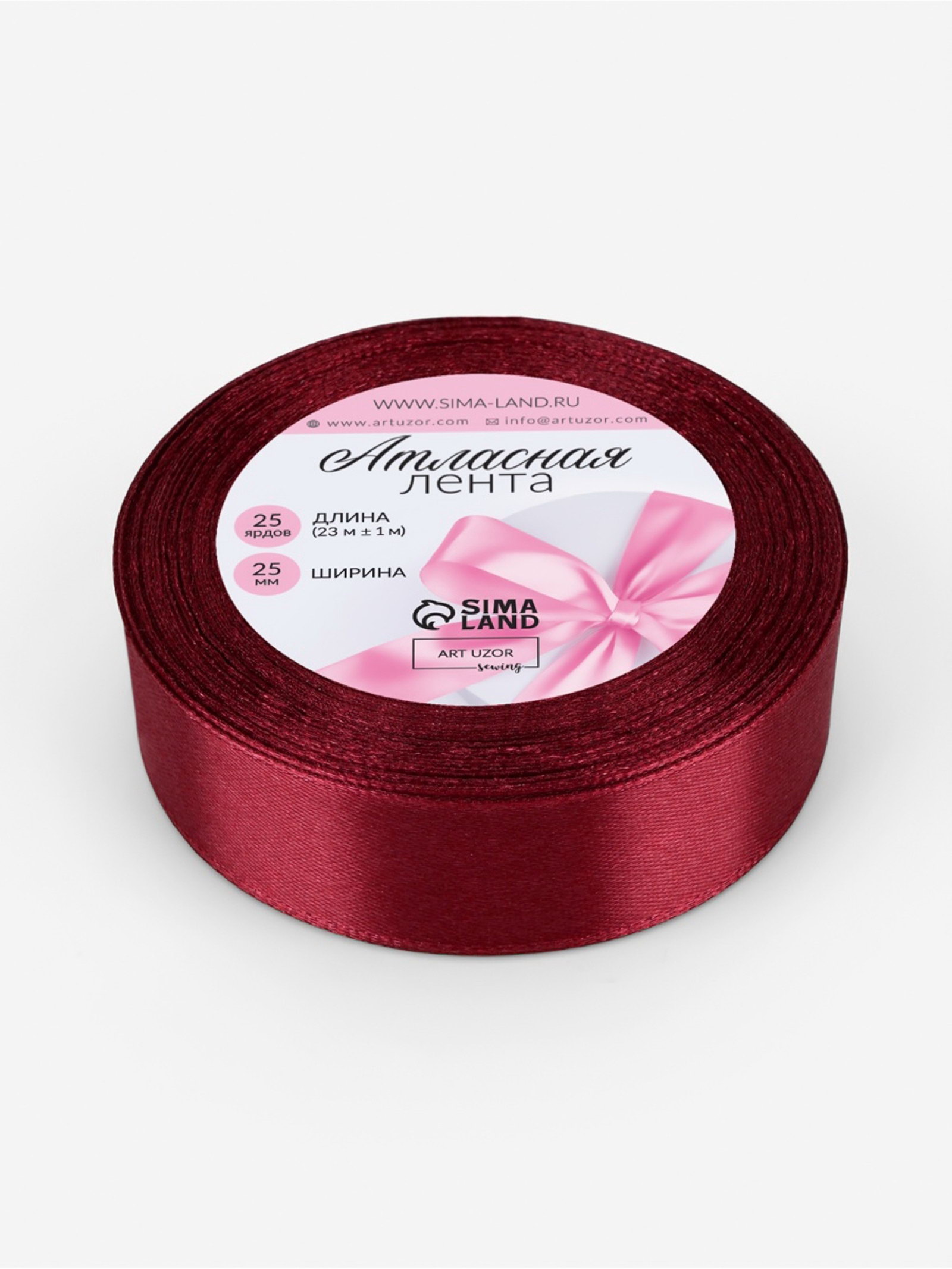 Лента атласная, 25 мм, 23+-1 м, бордовая №37, 9x9x2.5 см., Арт Узор, Китай