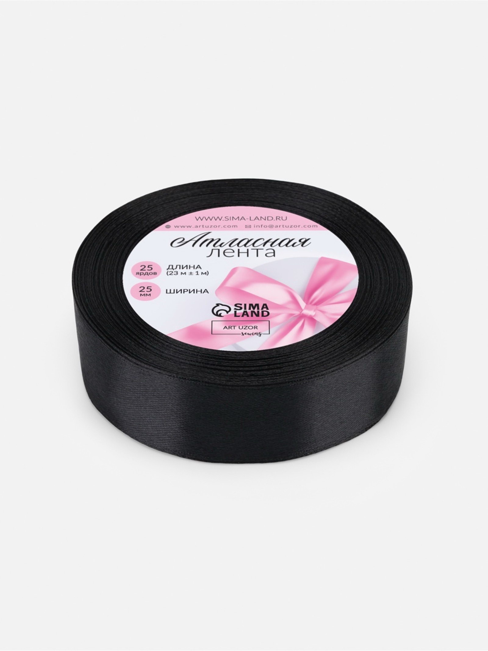 Лента атласная, 25 мм, 23+-1 м, чёрная №39, 9x9x2.5 см., Арт Узор, Китай
