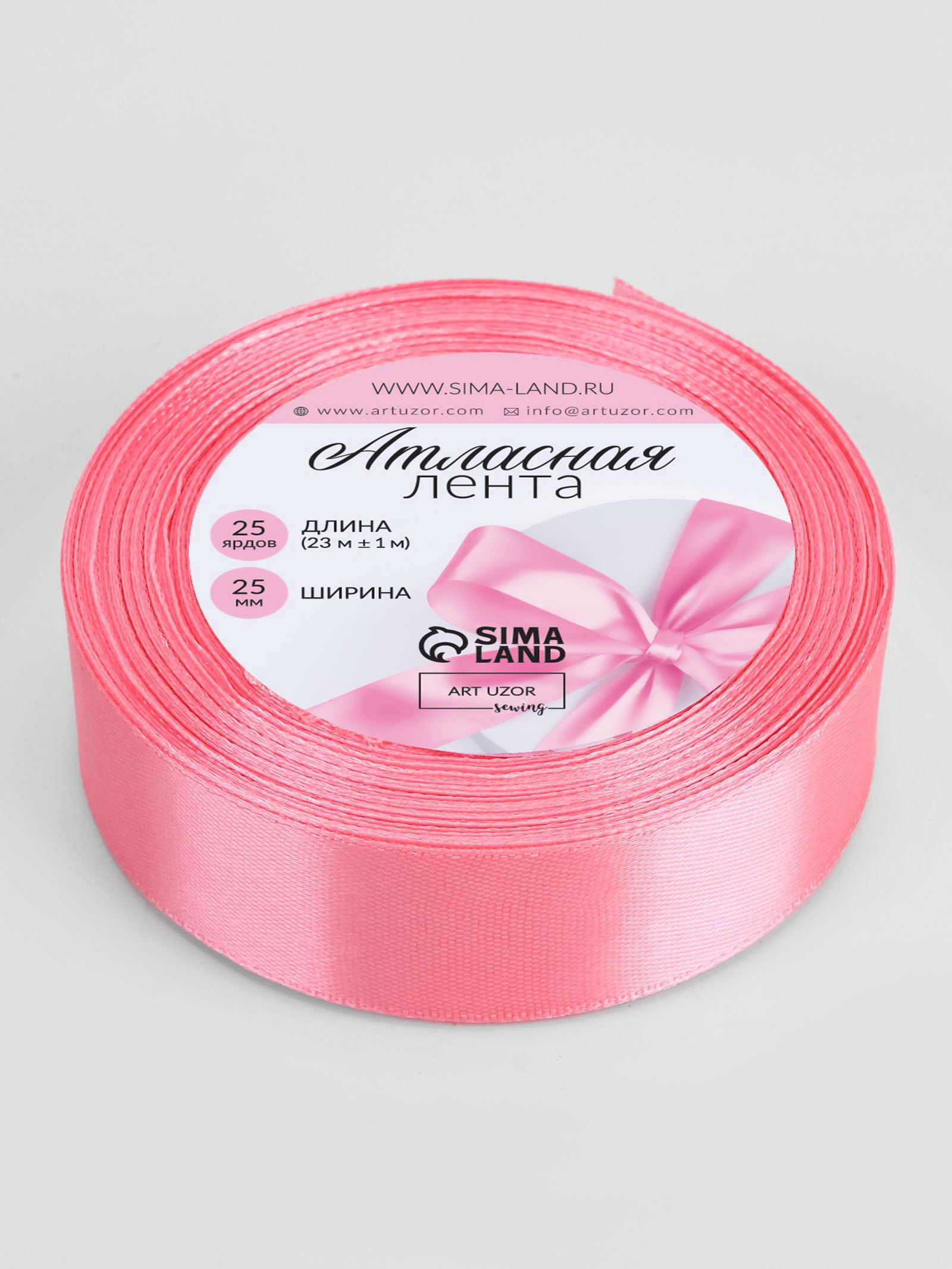 Лента атласная, 25 мм, 23+-1 м, нежно-розовая №147, 9x9x2.5 см., Арт Узор, Китай