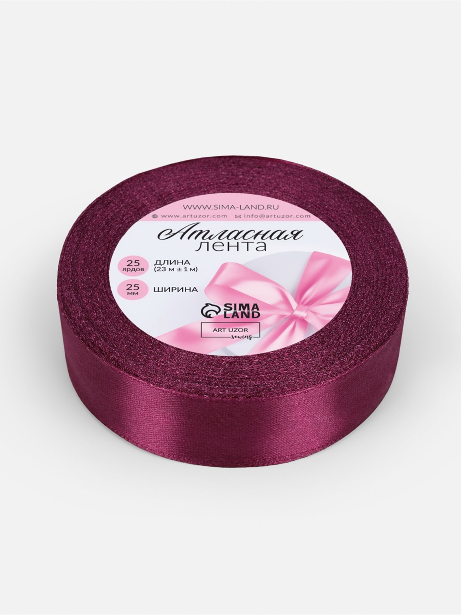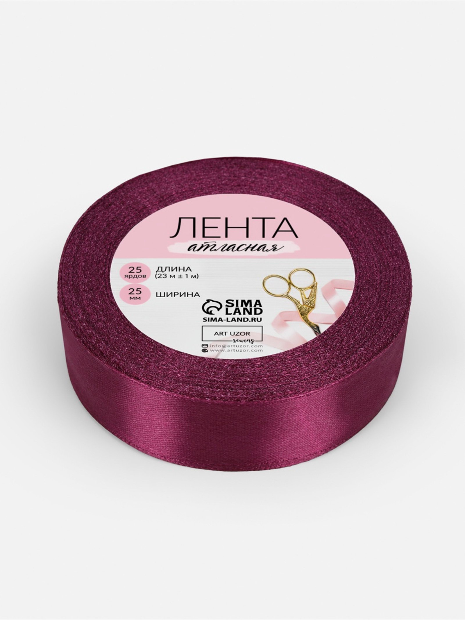 Лента атласная, 25 мм, 23+-1 м, фиолетовая №252, 9x9x2.5 см., Арт Узор, Китай
