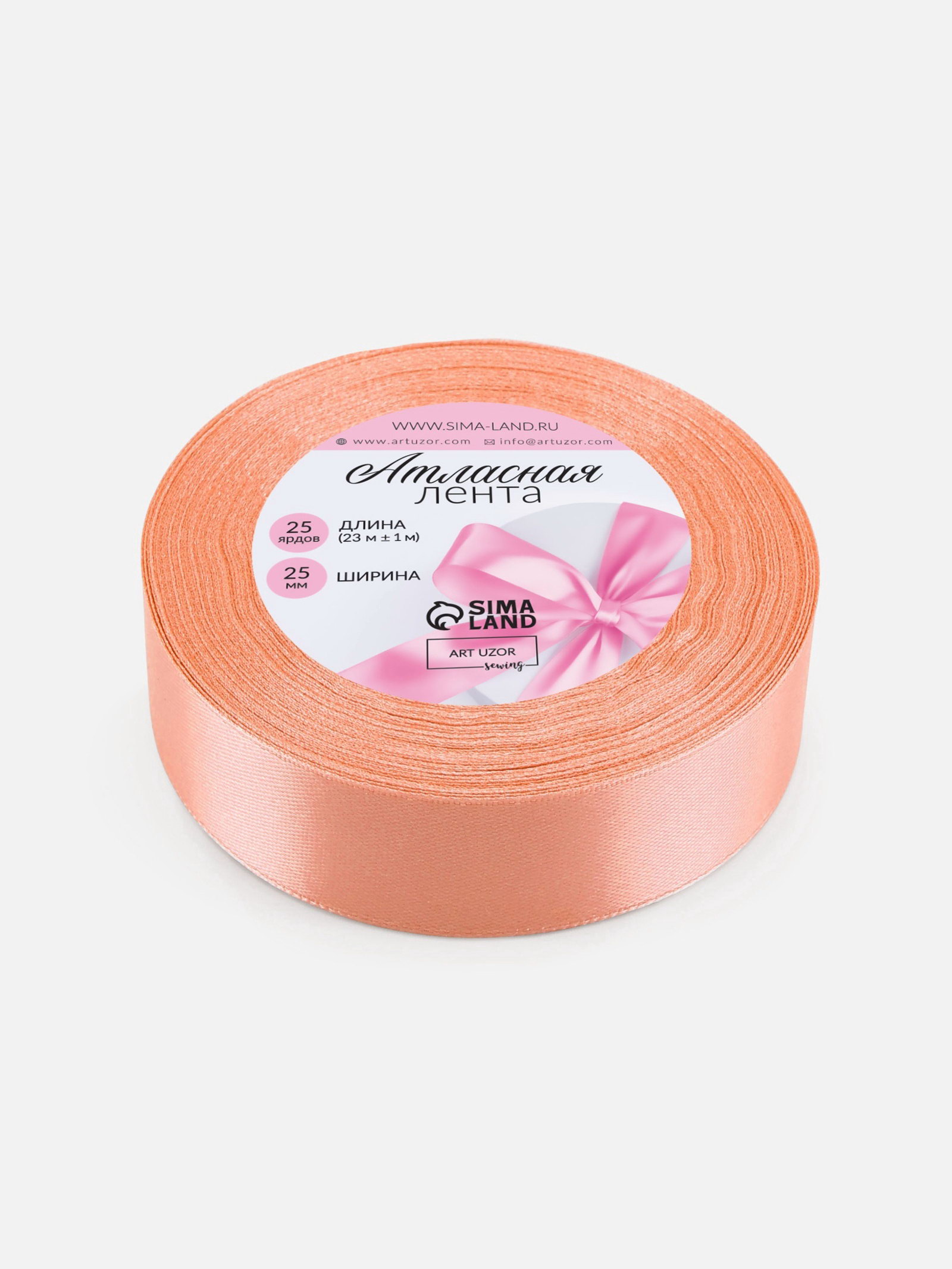 Лента атласная, 25 мм, 23+-1 м, розово-бежевая №124, 9x9x2.5 см., Арт Узор, Китай