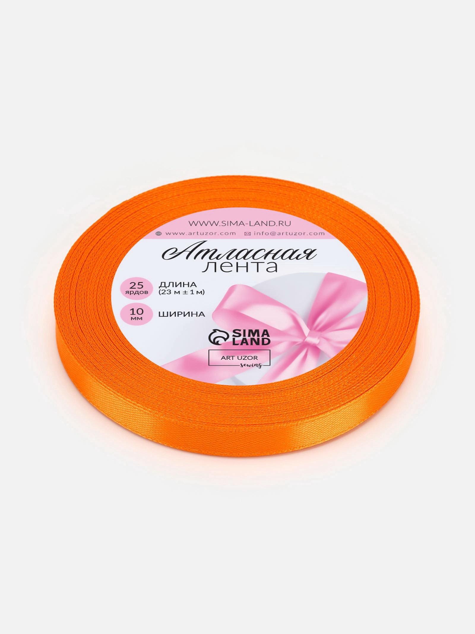 Лента атласная, 10 мм, 23+-1 м, ярко-оранжевая №25, 9x9x1 см., Арт Узор, Китай