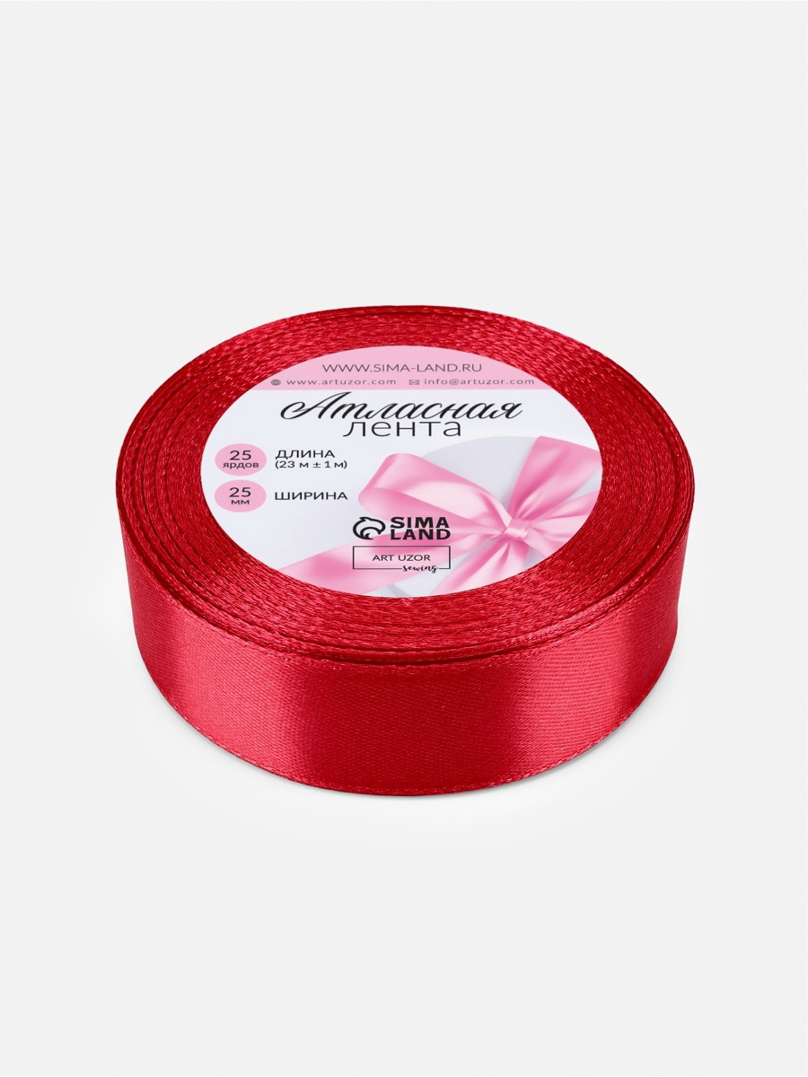 Лента атласная, 25 мм, 23+-1 м, красная №33, 9x9x2.5 см., Арт Узор, Китай
