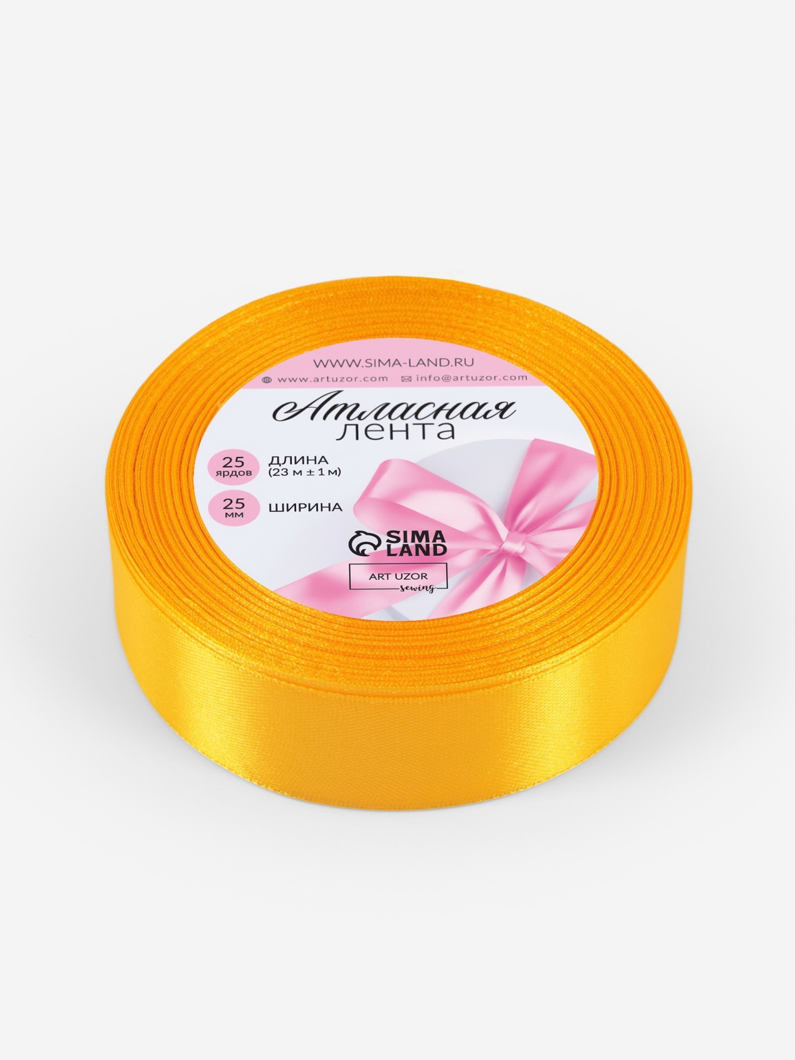 Лента атласная, 25 мм, 23+-1 м, жёлтая №16, 9x9x2.5 см., Арт Узор, Китай