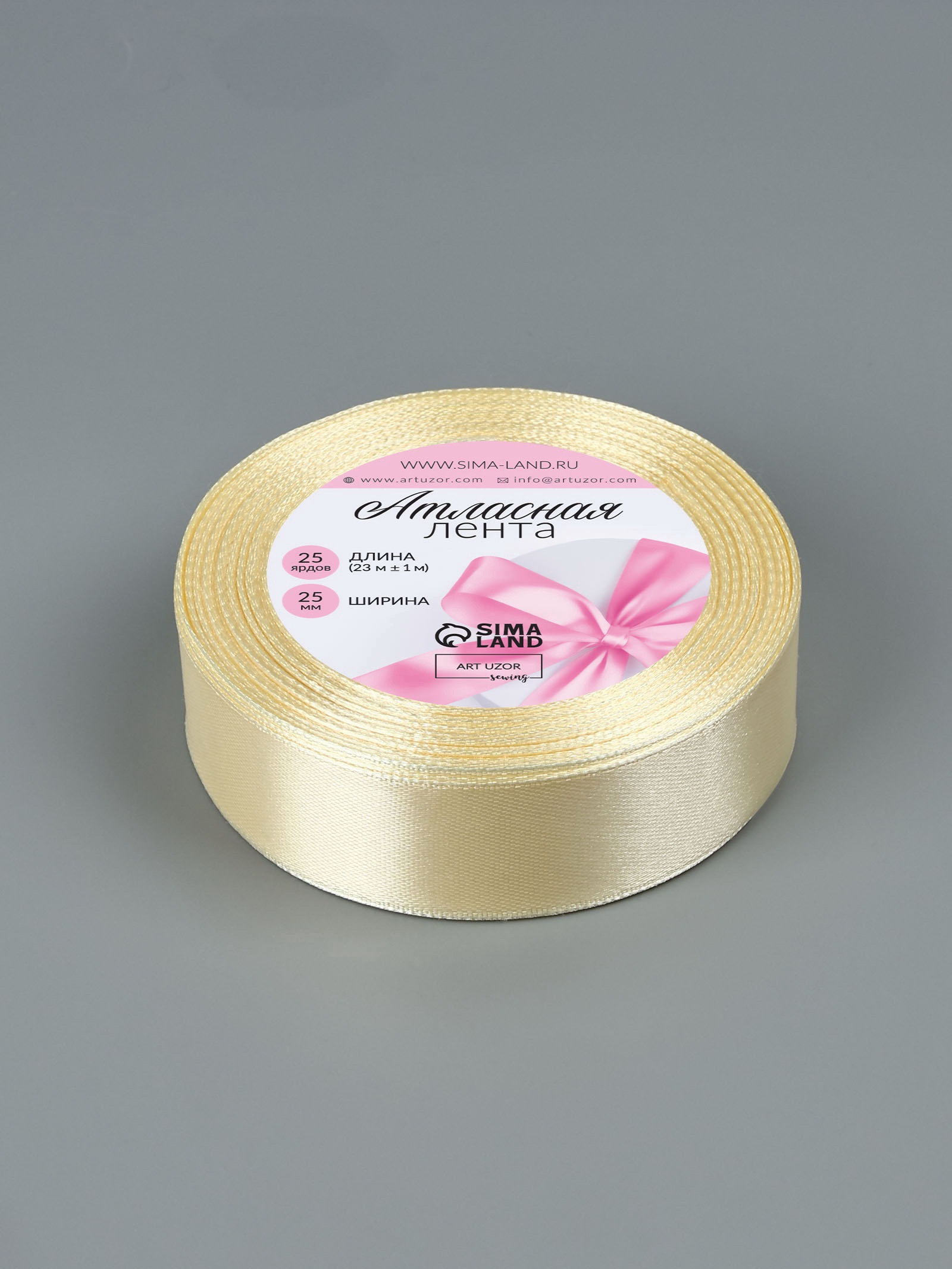 Лента атласная, 25 мм, 23+-1 м, светло-бежевая №64, 9x9x2.5 см., Арт Узор, Китай
