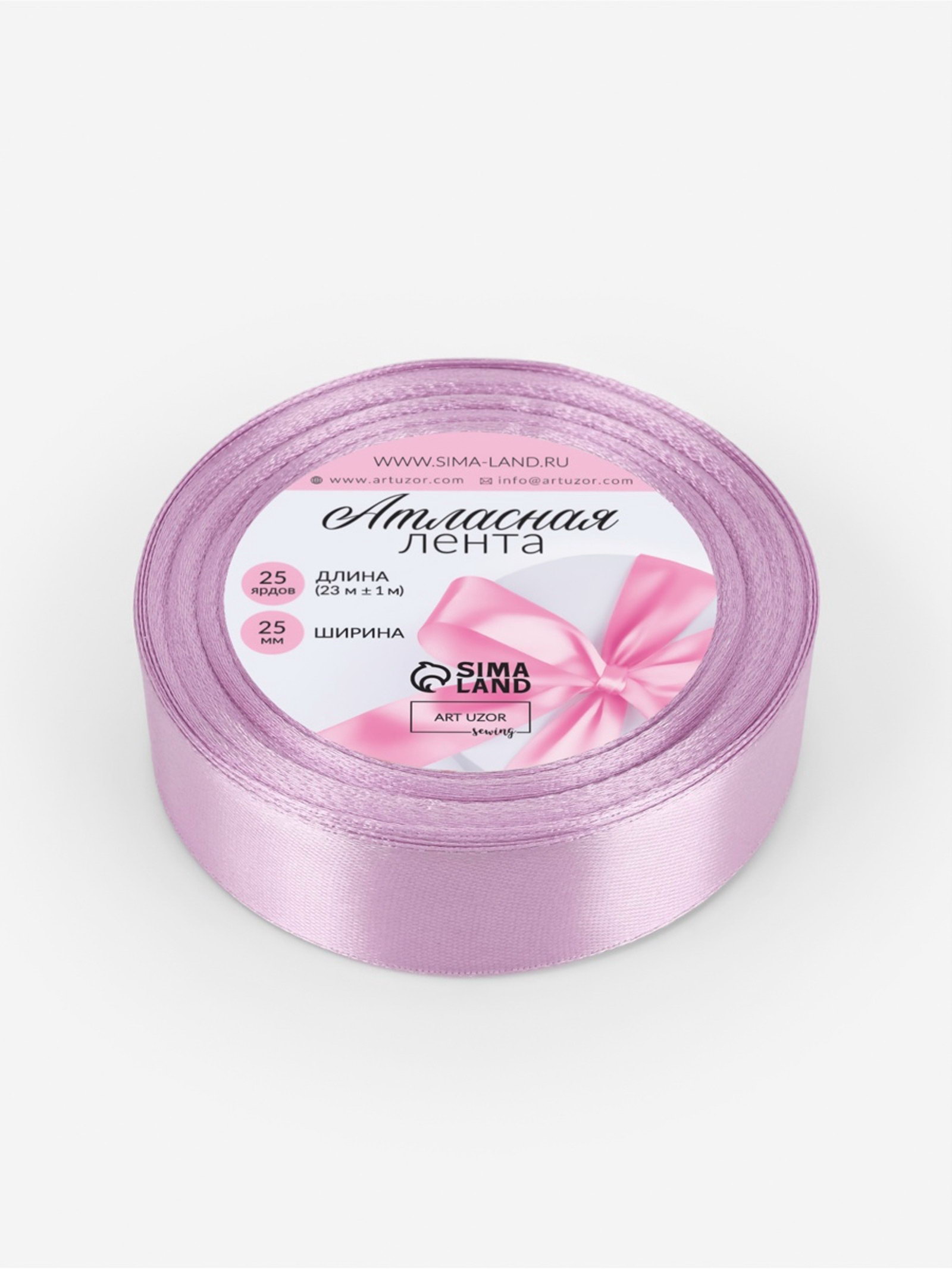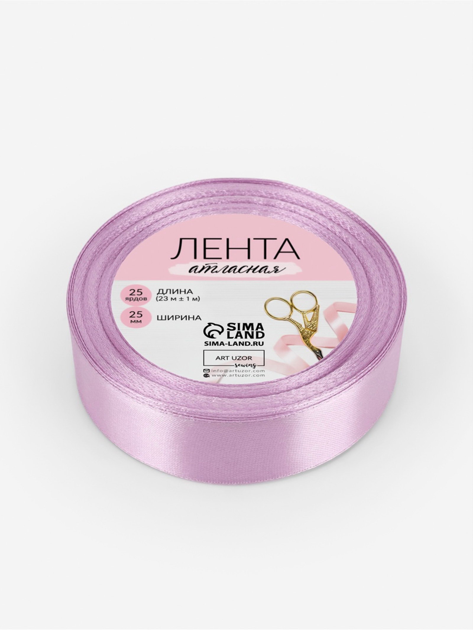 Лента атласная, 25 мм, 23+-1 м, сиреневая №141, 9x9x2.5 см., Арт Узор, Китай